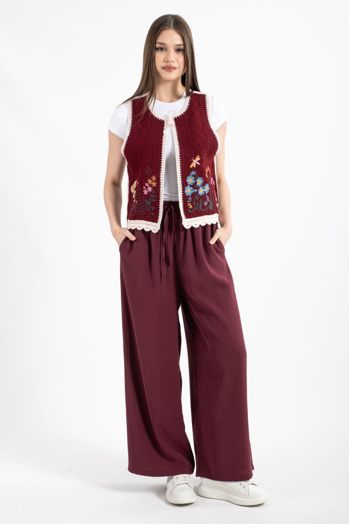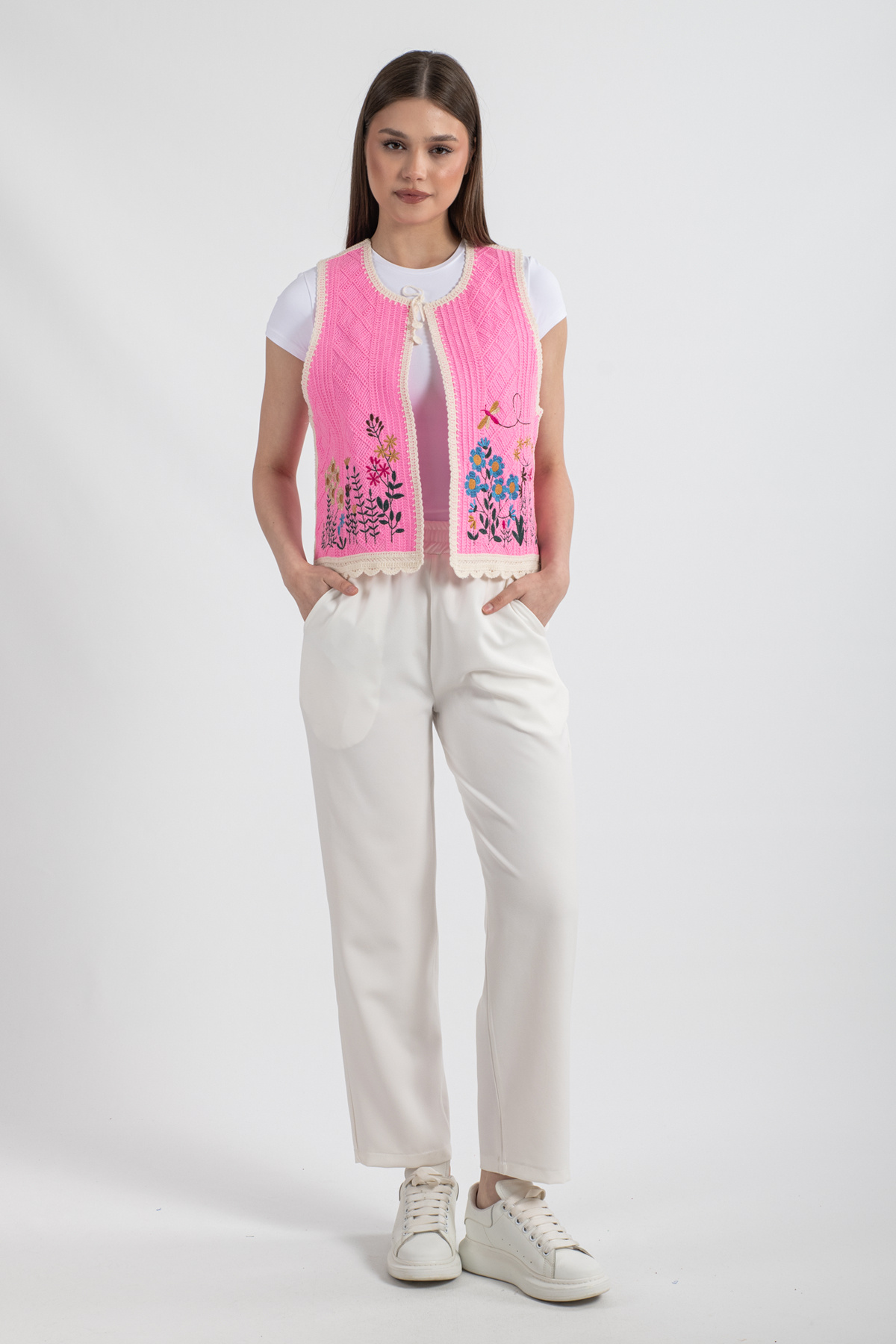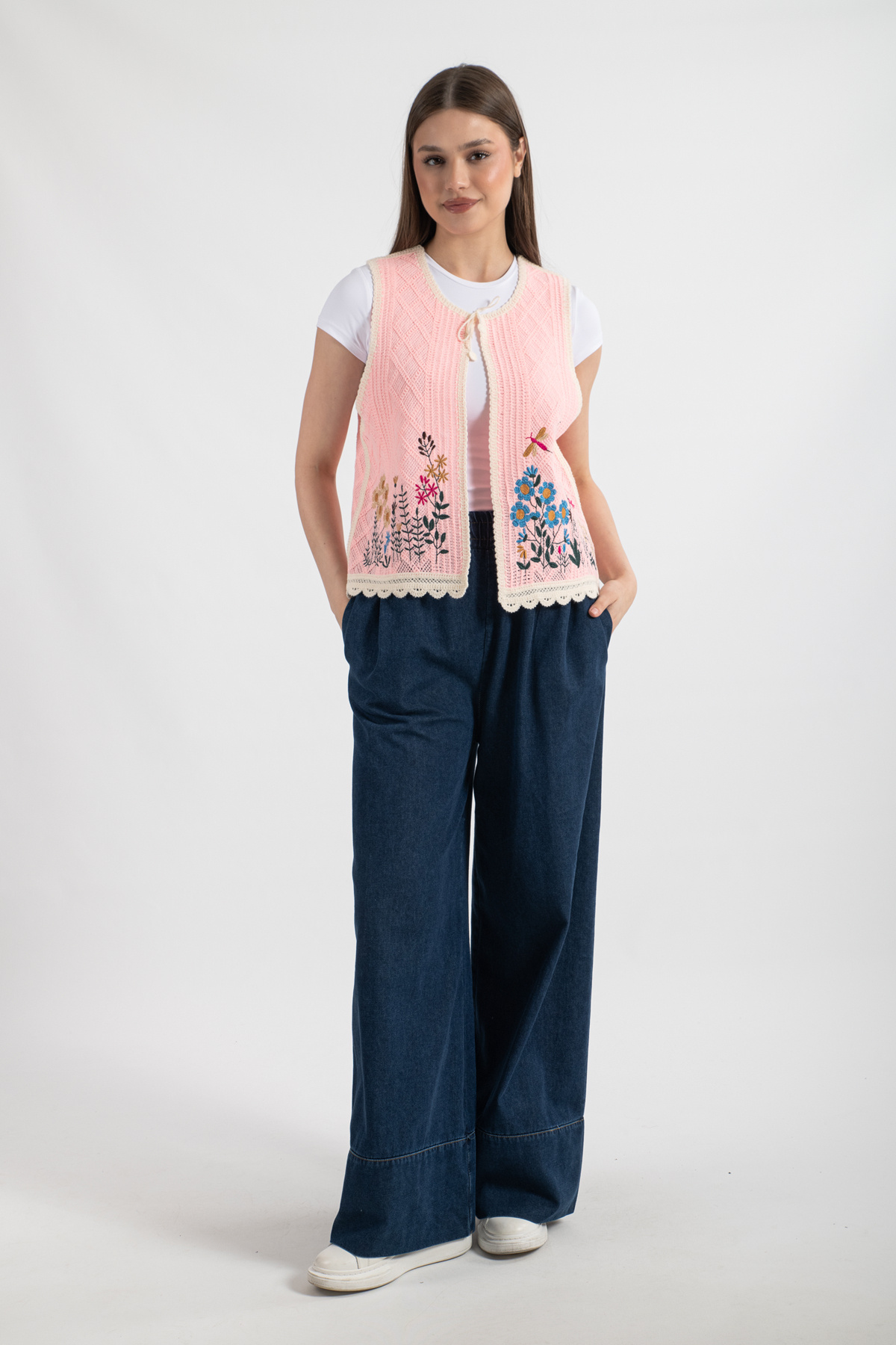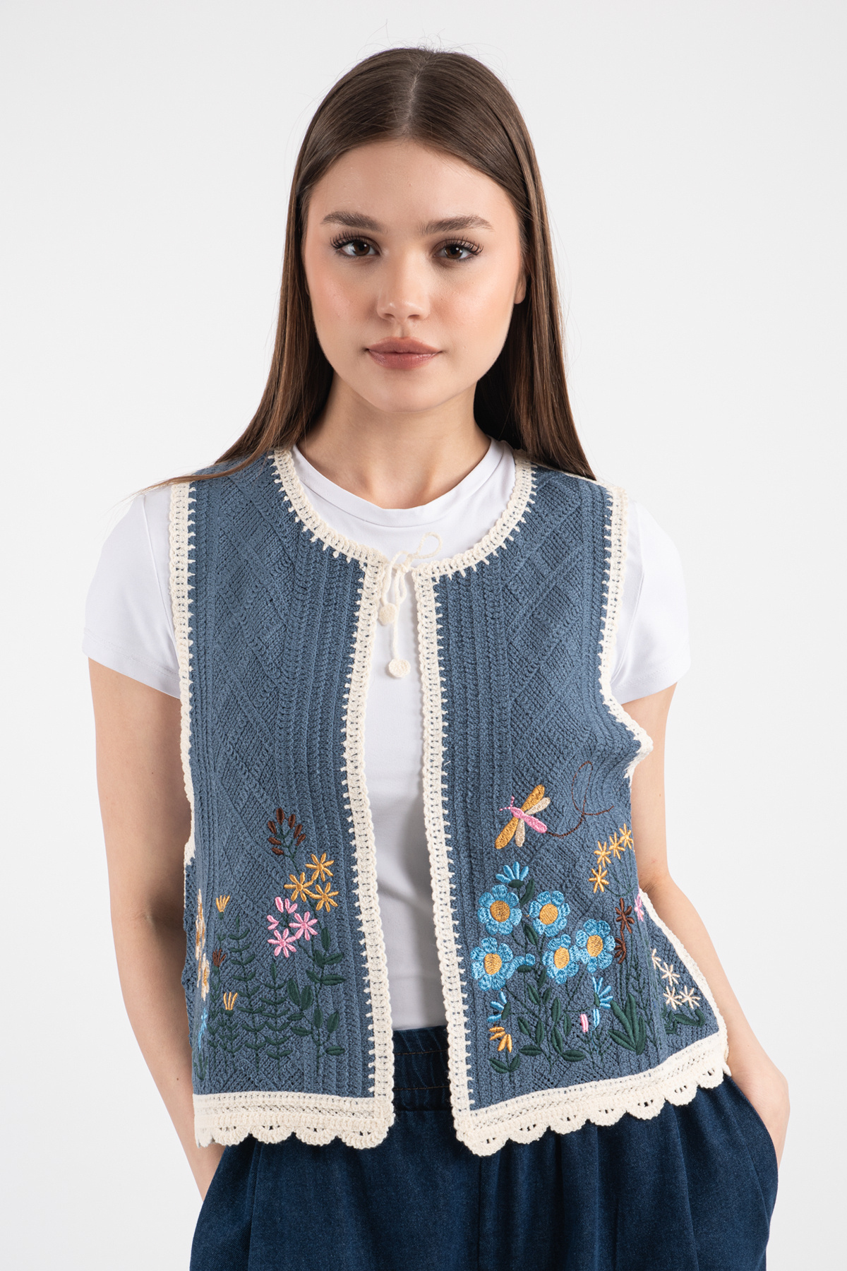 HatunAtila Desenli Süzine Örgü Triko Yelek Mavi