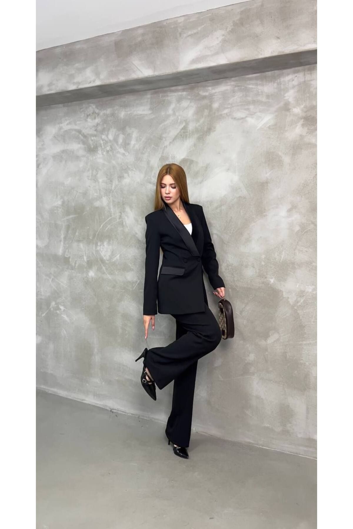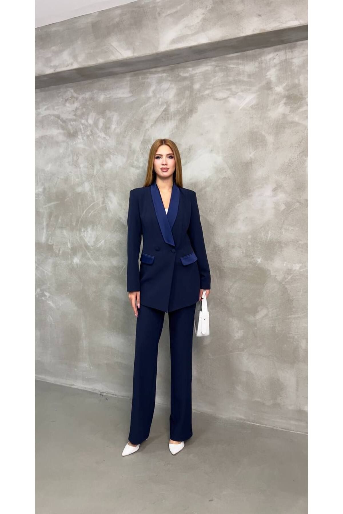 Kadın Saten Detaylı Mostralı Takım Elbise