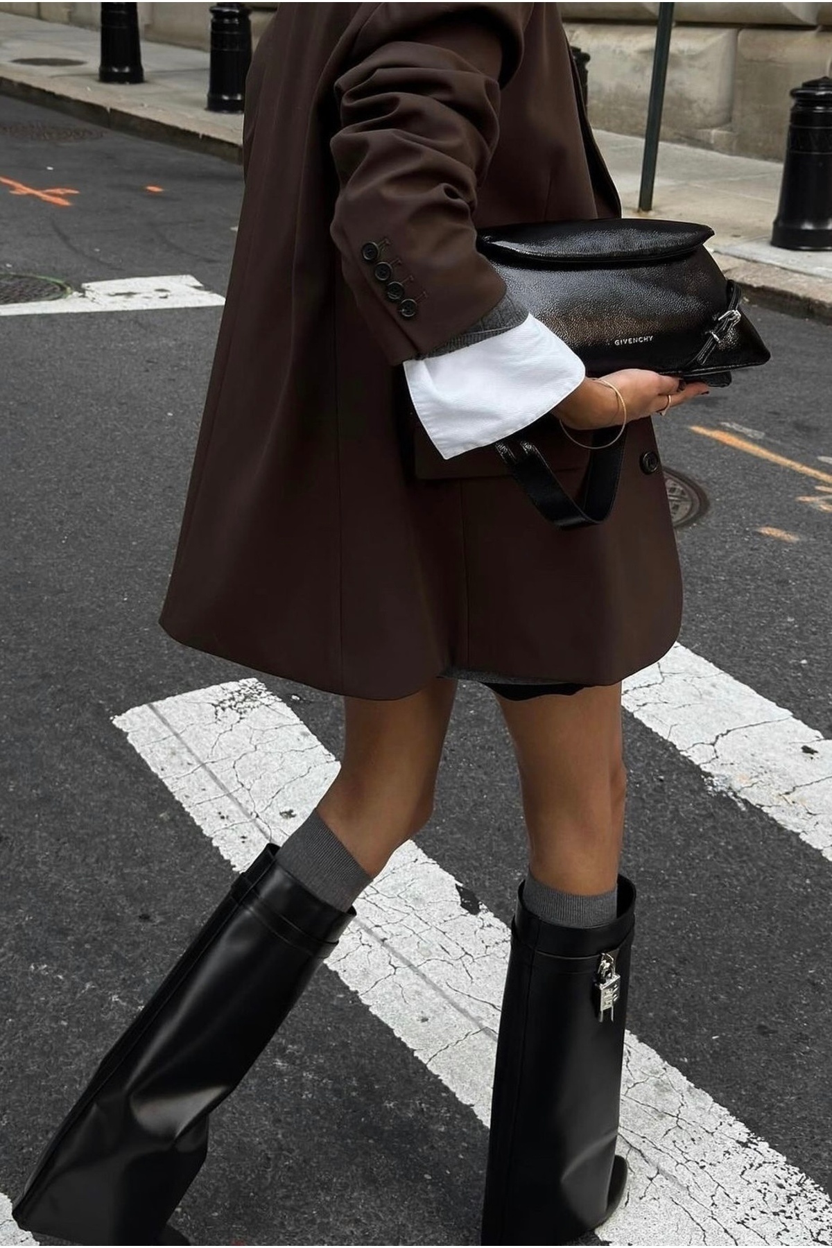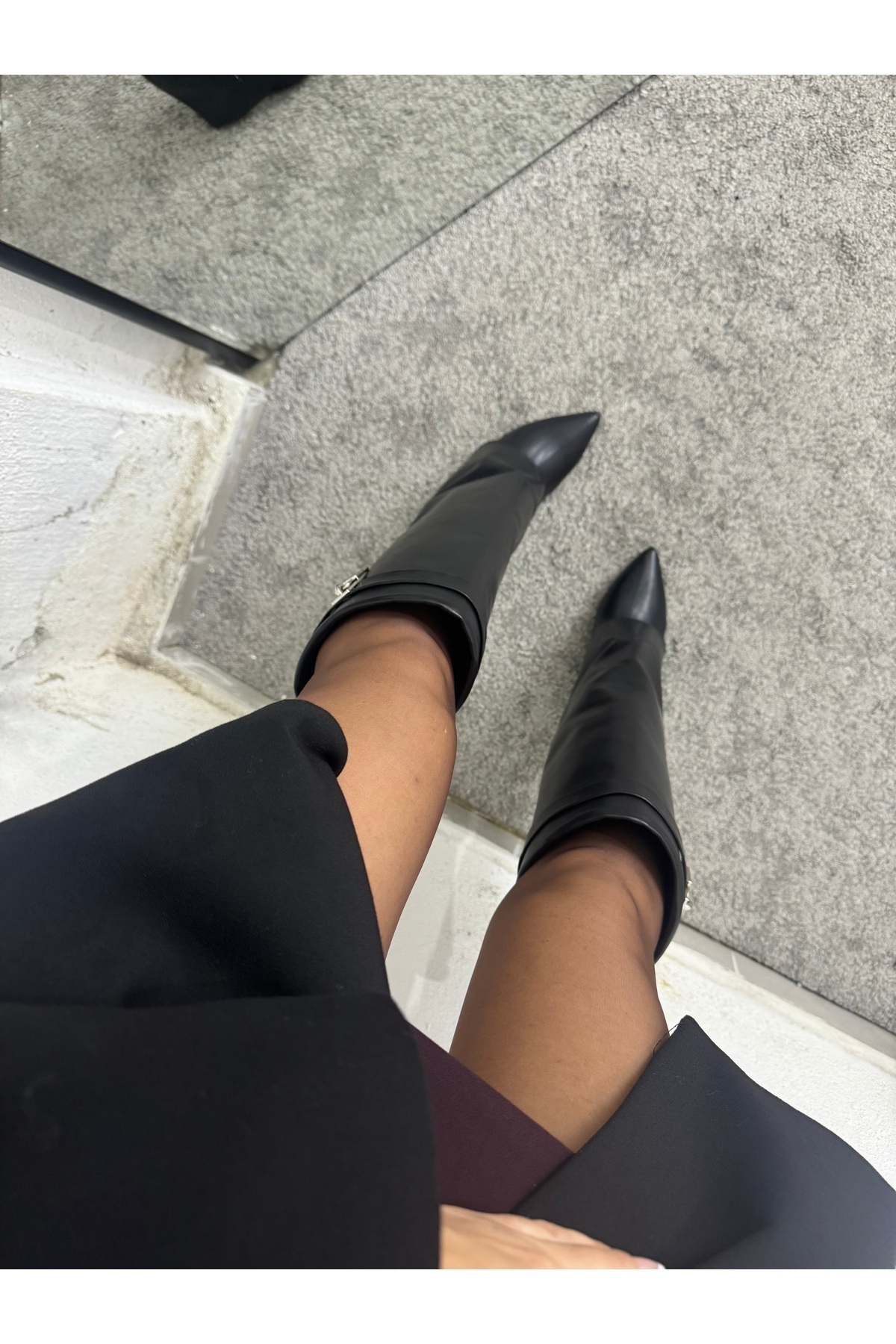 - Sade ve şık tasarımıyla her ortama uyum sağlayan düz desenli siyah tozluk detaylı topuklu çizme.