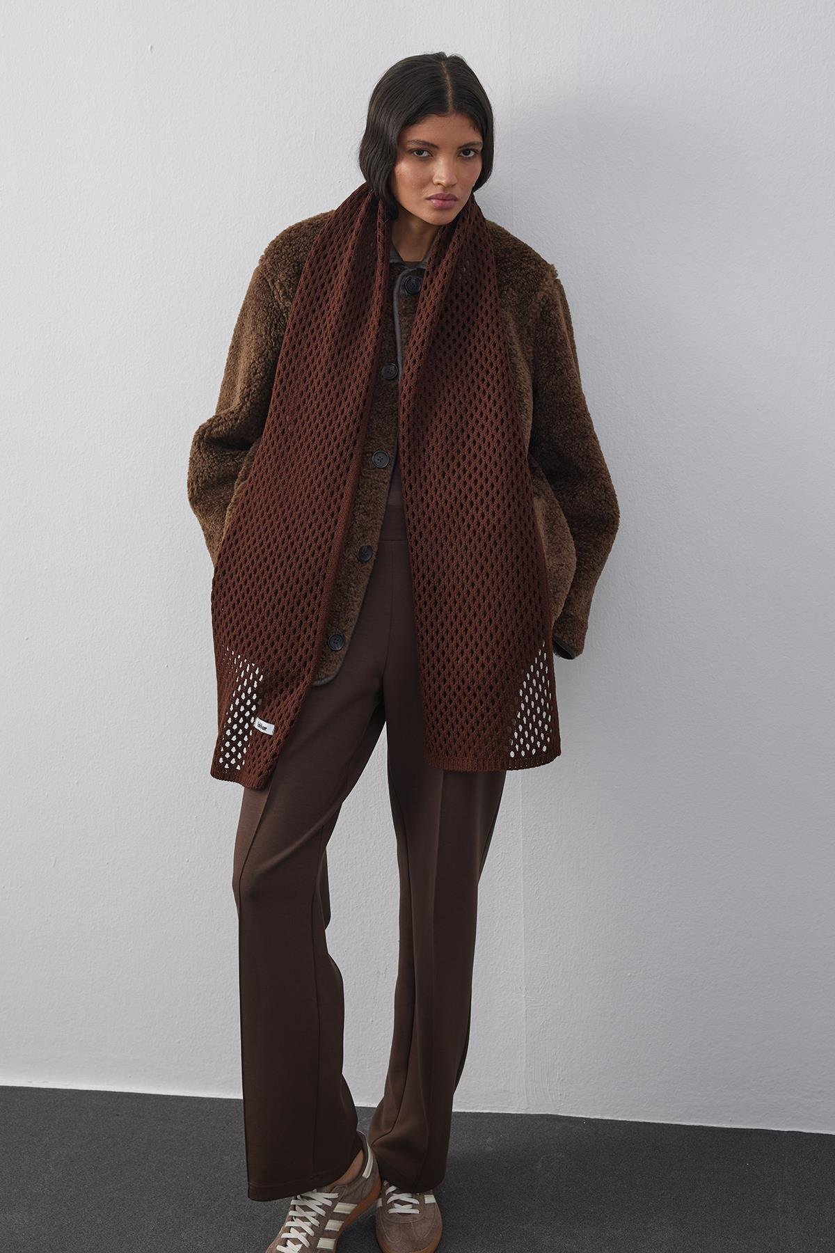 Ajurlu Fular Atkı Kahverengi