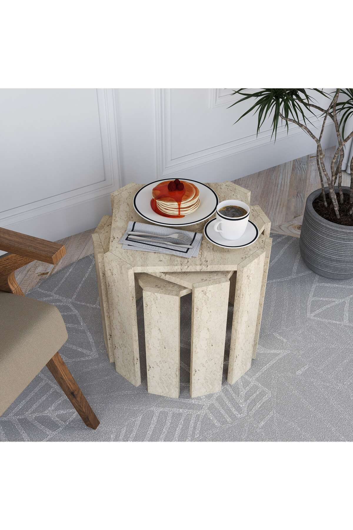 Azra Traverten Zigon Sehpa Yan Sehpa 3'lü Sehpa, Ekonomik Sehpa, Modüler Sehpa, Modern Sehpa