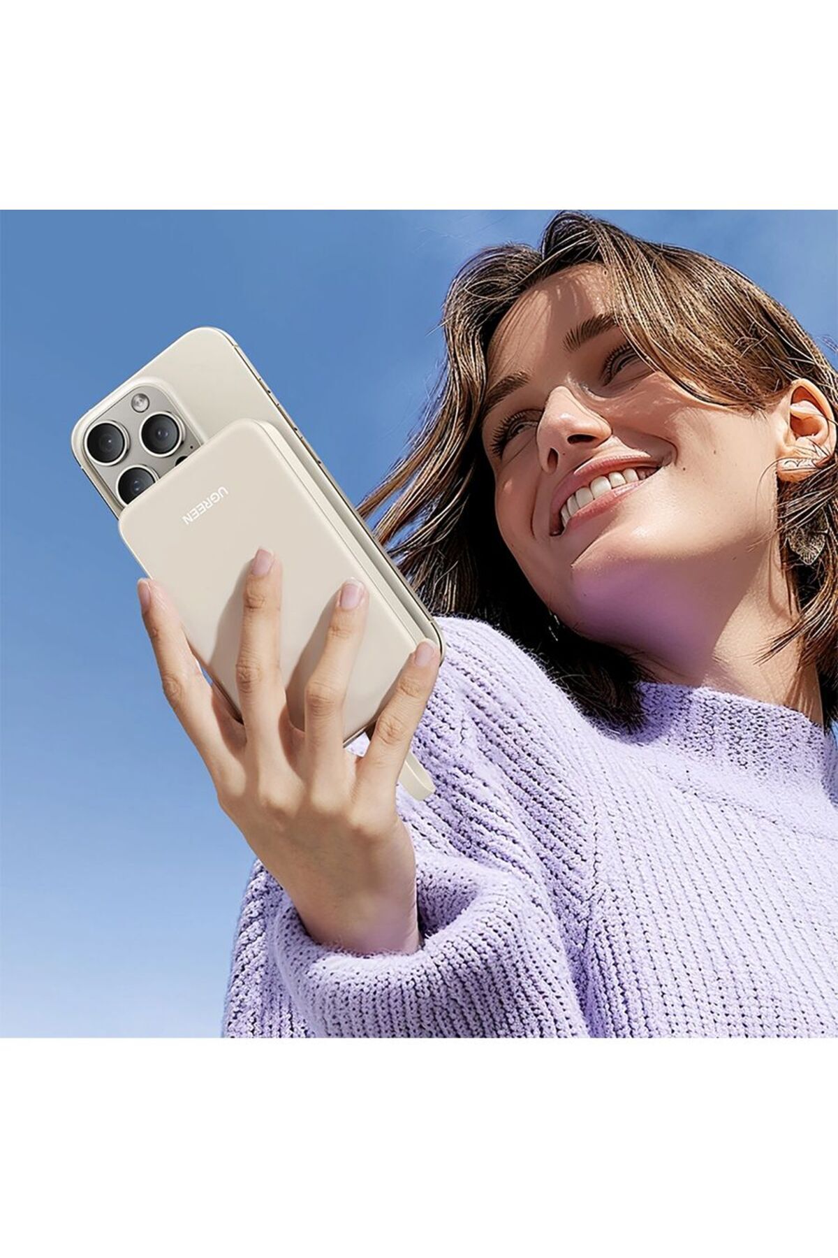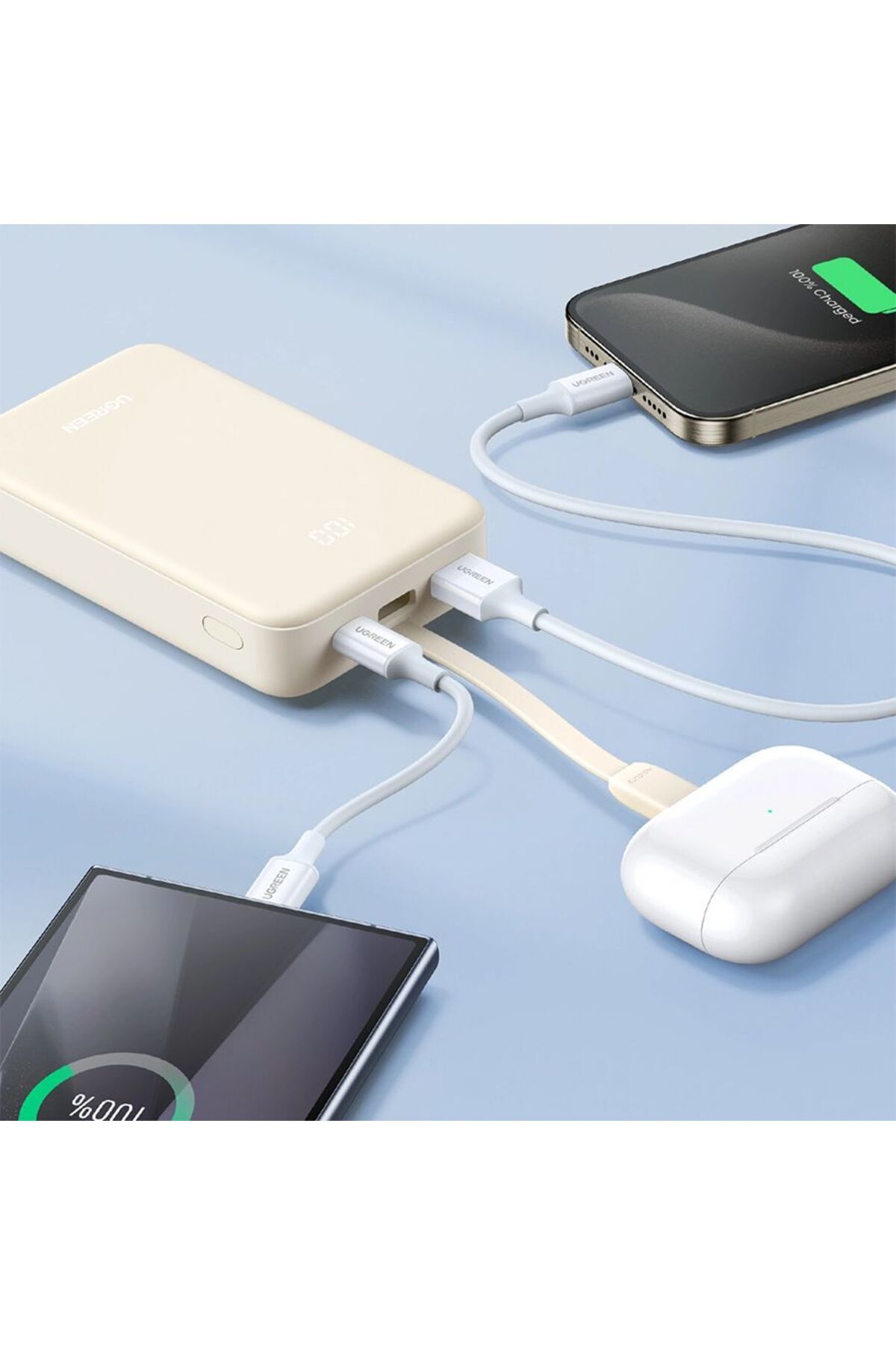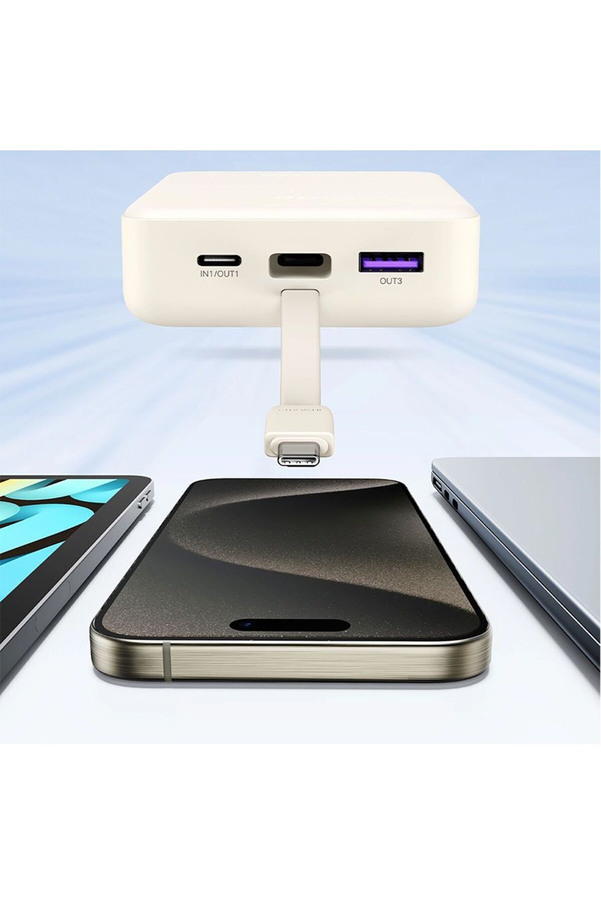 PowerBank USB-C ve Dahili Kablolu USB Portu 22.5W 20000mAh - Bej