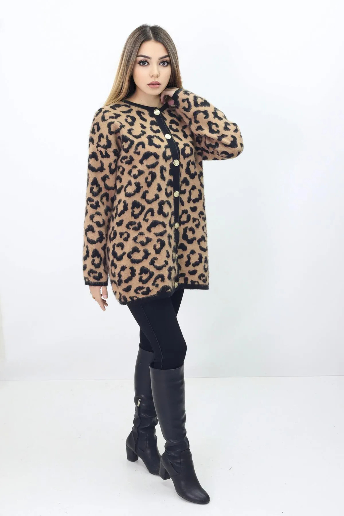 - Bisiklet yaka kesimi modern ve zamansız bir stil oluştururken, leopar deseniyle dikkat çekici detaylar ekler.