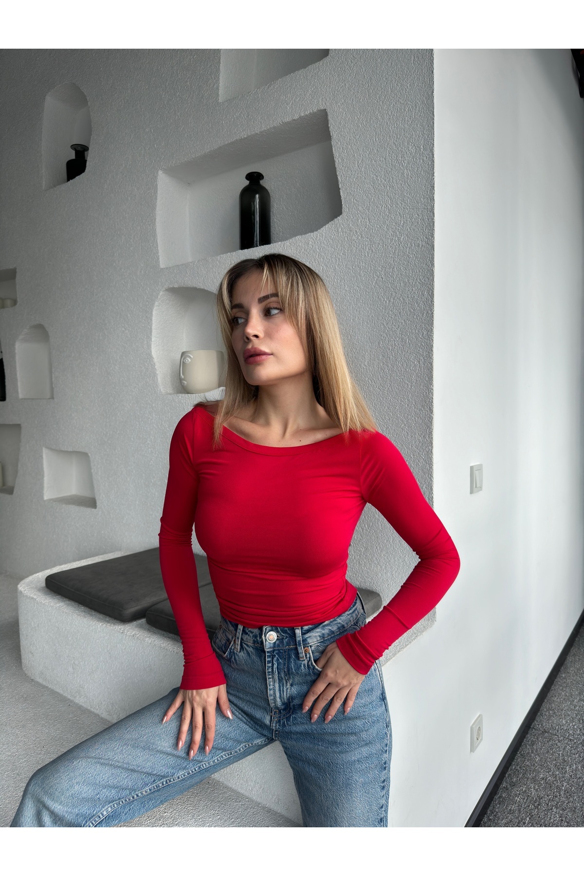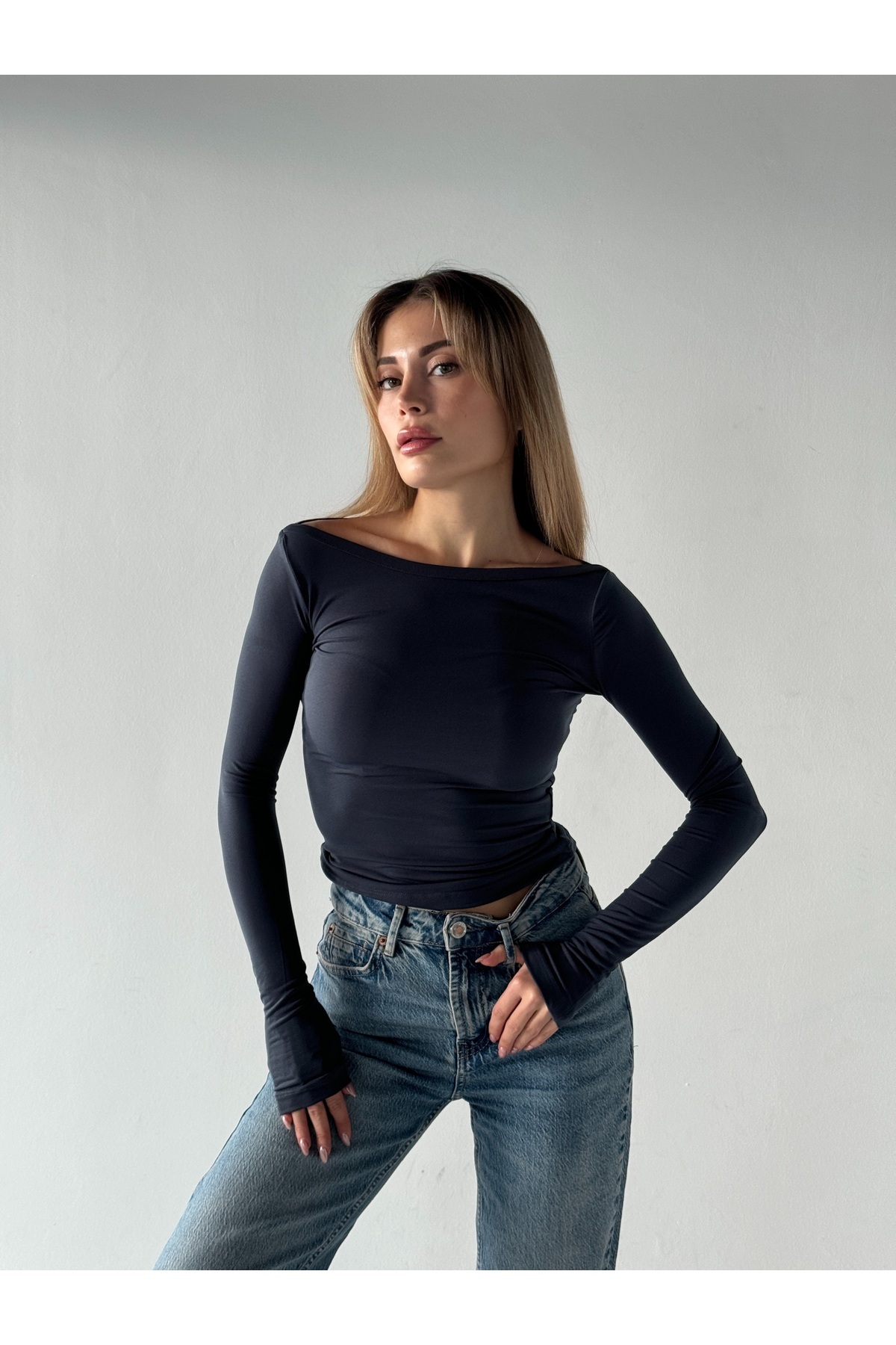 - Uzun kol boyu ve kayık yaka detayı ile hem gündüz hem de gece kombinlerinizde fark yaratmanızı sağlar.