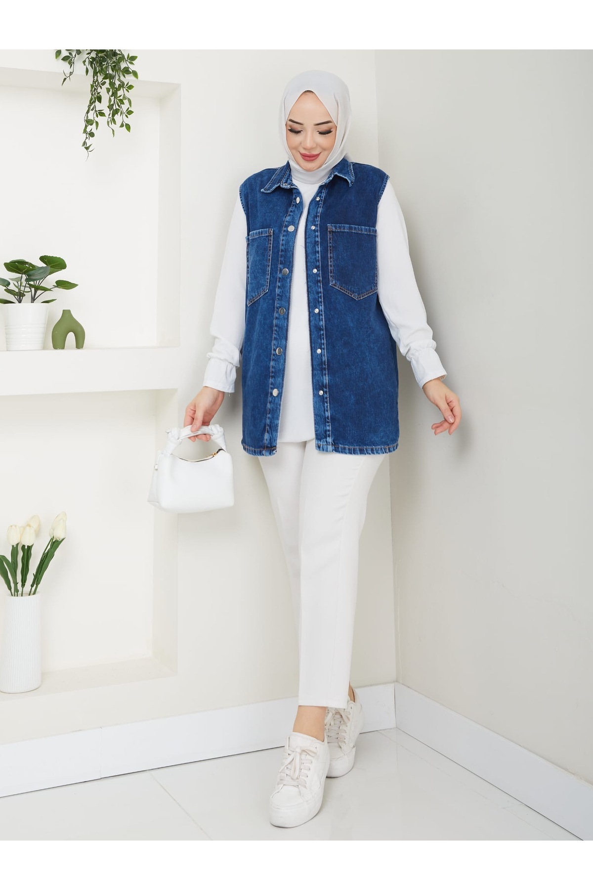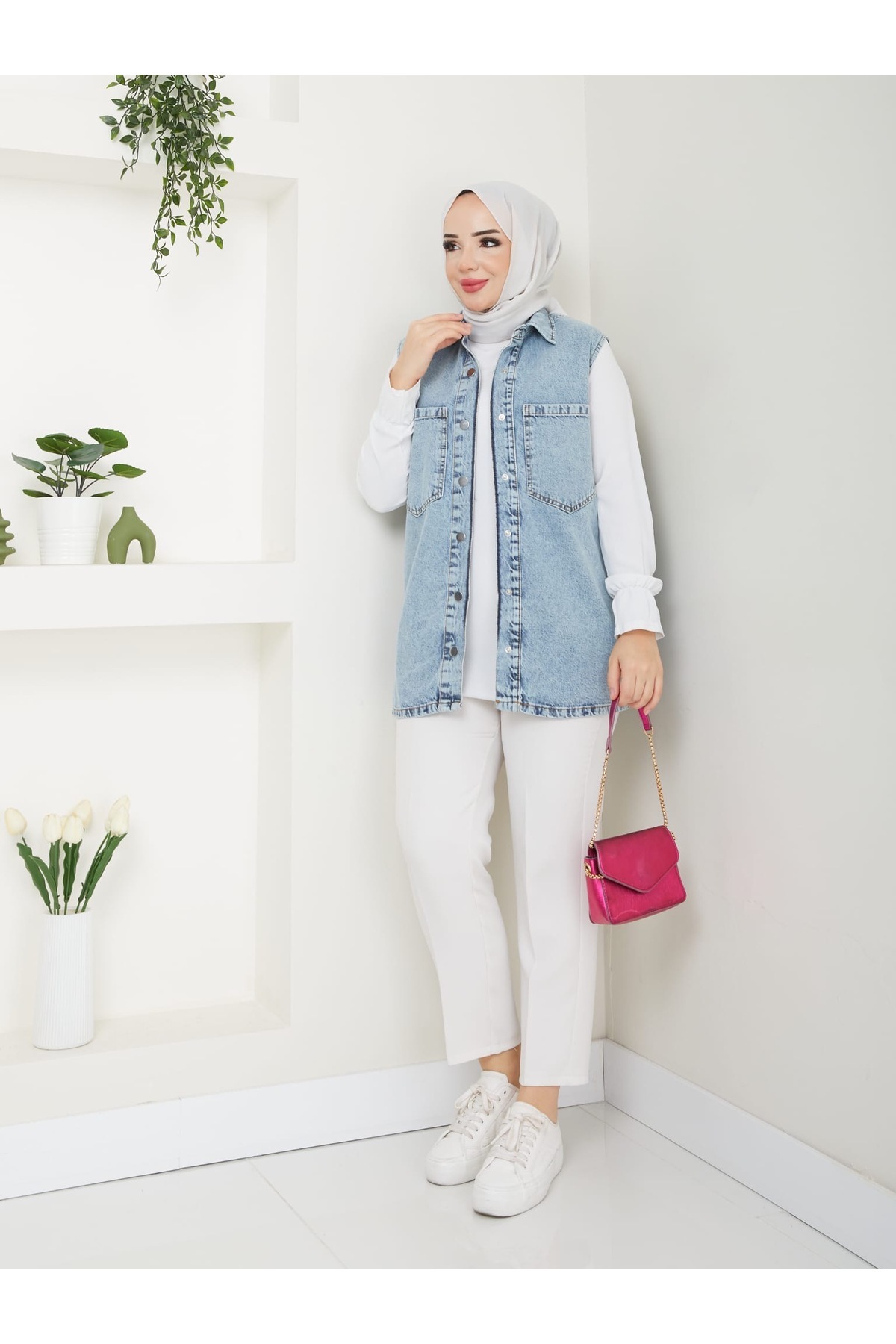 • Kot yelek çıtçıtlı rahat kalıp üste iki çepli
