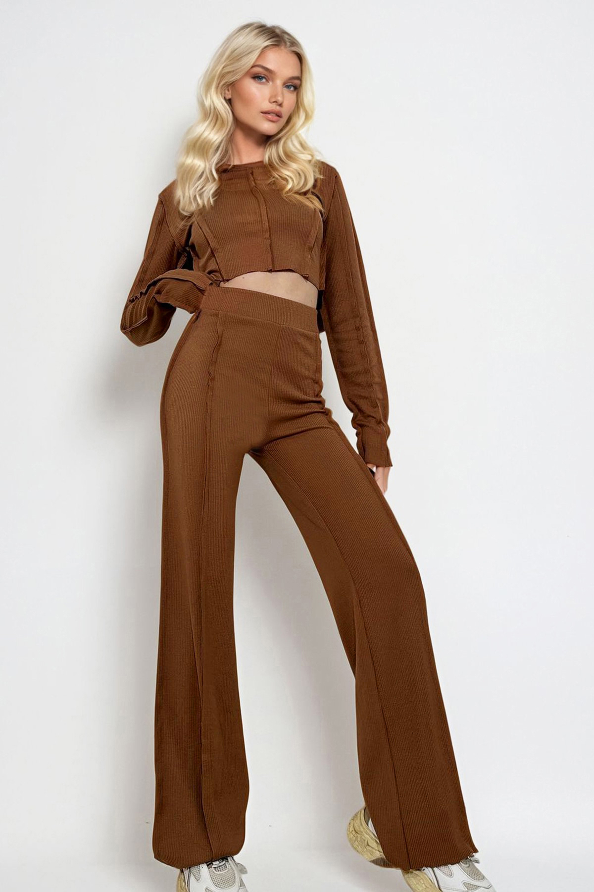 Bisiklet Yaka, Pis Dikiş Detaylı Crop Bluz Ve Palazzo Pantolon Takımı, Oldukça Şık Ve Modern Bir Kombin Oluşturur. Bisiklet Yaka Detayı, Sade Ve Zarif Bir Görünüm Sunarken, Pis Dikiş Detayları Bluze Özgün Bir Dokunuş Katar. Crop Bluz İse Yüksek Bel Palazzo Pantolon İle Mükemmel Bir Uyum Sağlar, Bacakları Daha Uzun Gösterir Ve Beli Vurgular.Bu Tarz Bir Takımı, Şık Aksesuarlar Ve Topuklu Ayakkabılarla Tamamlayarak Sofistike Bir Görünüm Elde Edebilirsin. Günlük Stil İçin İse Spor Ayakkabılar Ve Minimalist Takılarla Rahat Ve Şık Bir Tarz Oluşturabilirsin.