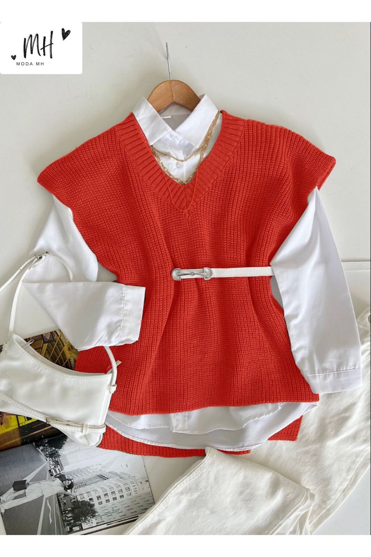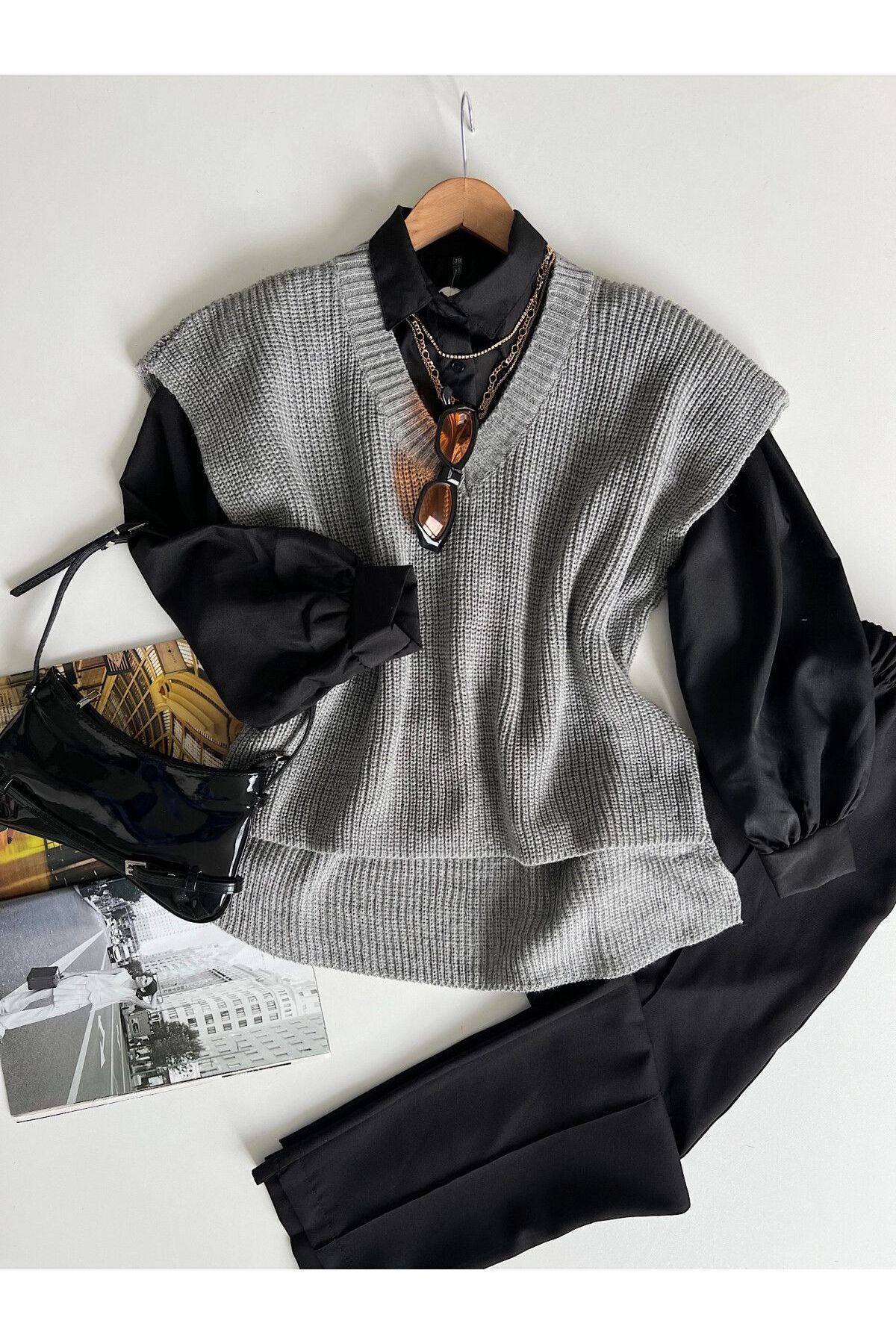 V Yaka Yırtmaclı Triko Selanik Süveter Ön Boy 65 Cm Arka Boy 70 Cm En 50 Cmdir