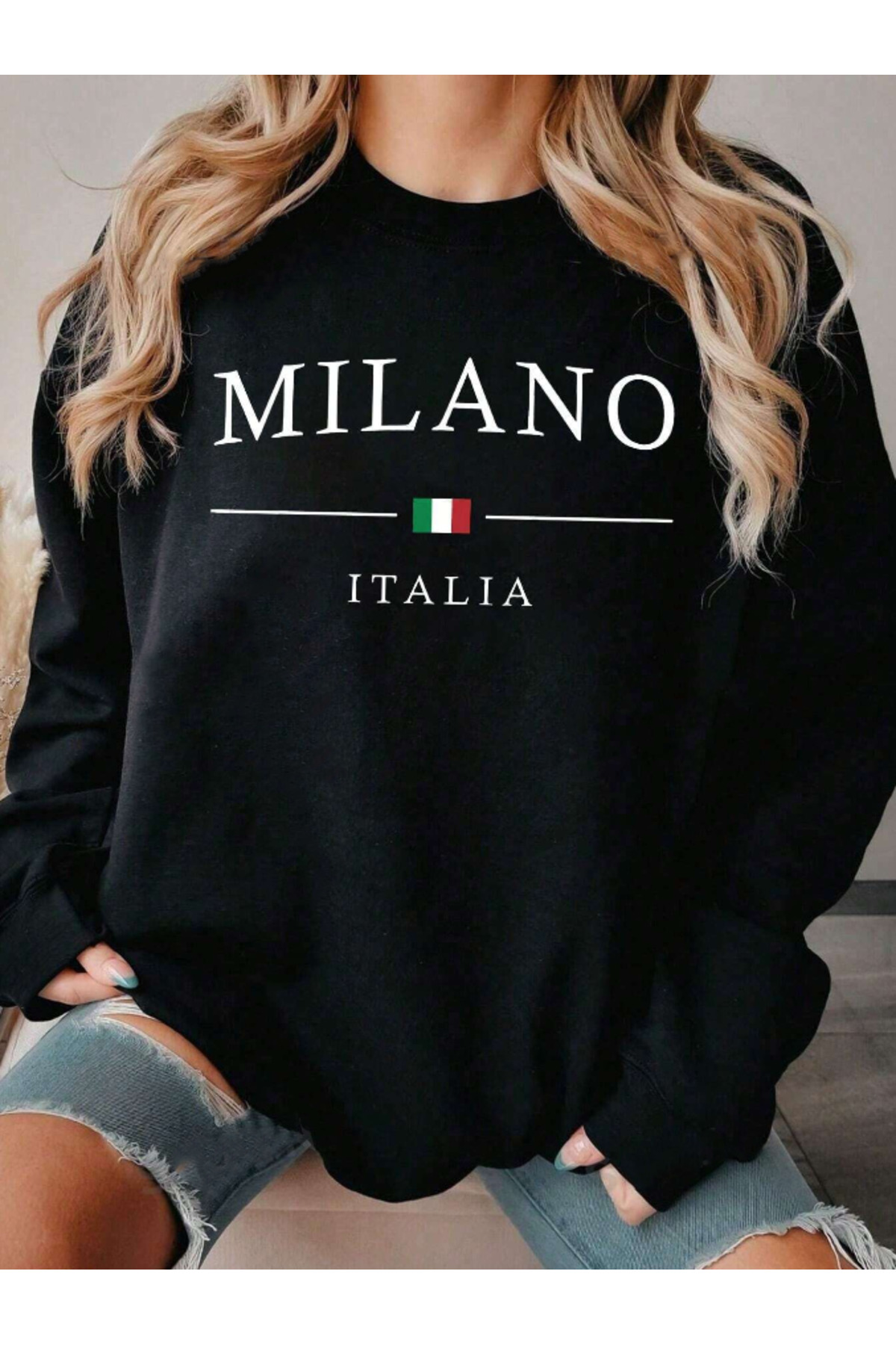 - Unisex tasarımı ile hem kadınlar hem de erkekler için uygun, Milano özel baskılı renkli sweatshirt.