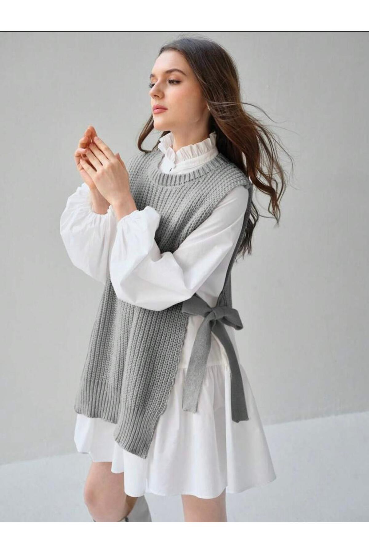 Kadın Selanik Yandan Bağlamalı Süveter