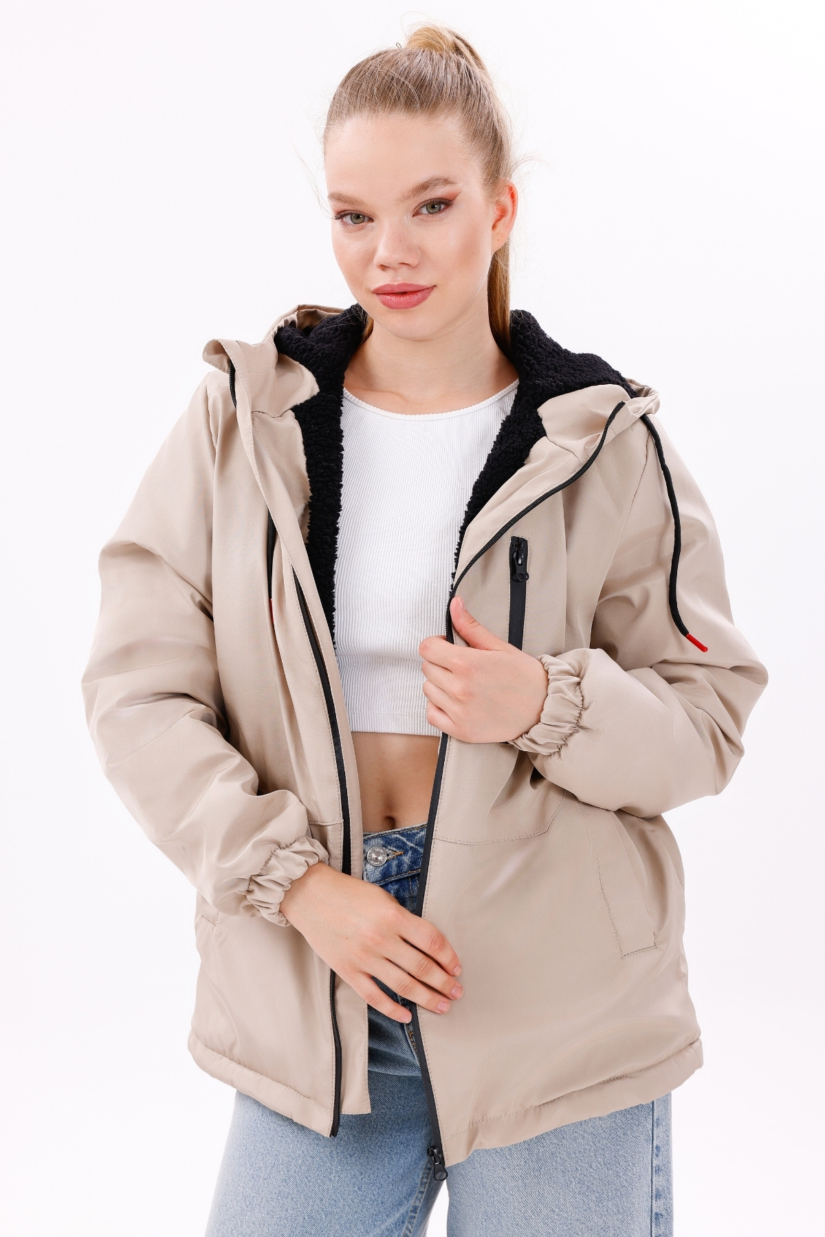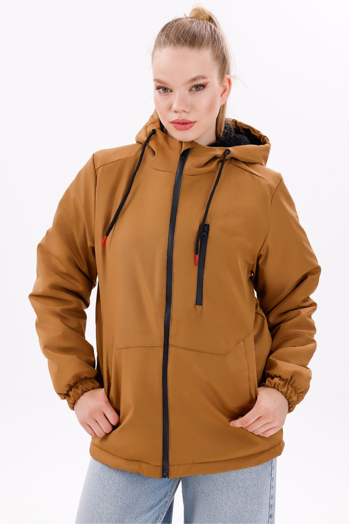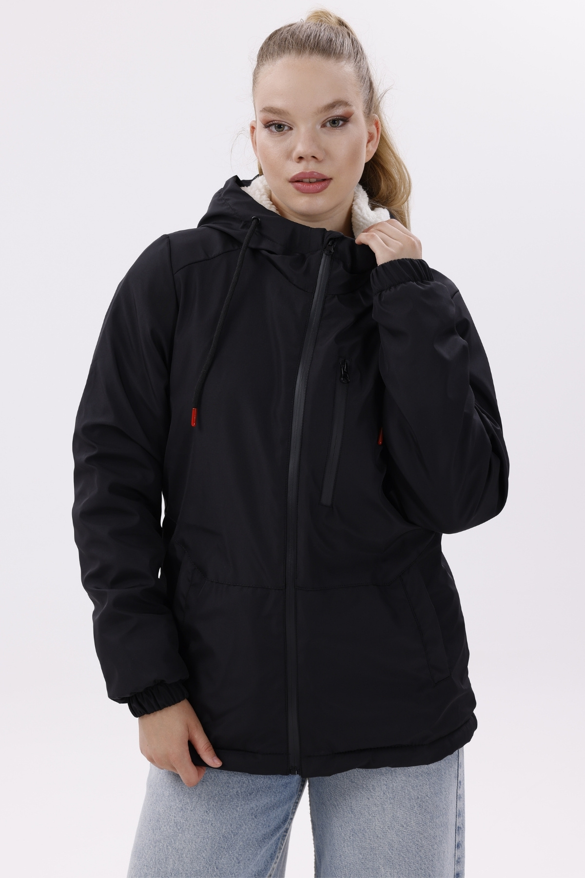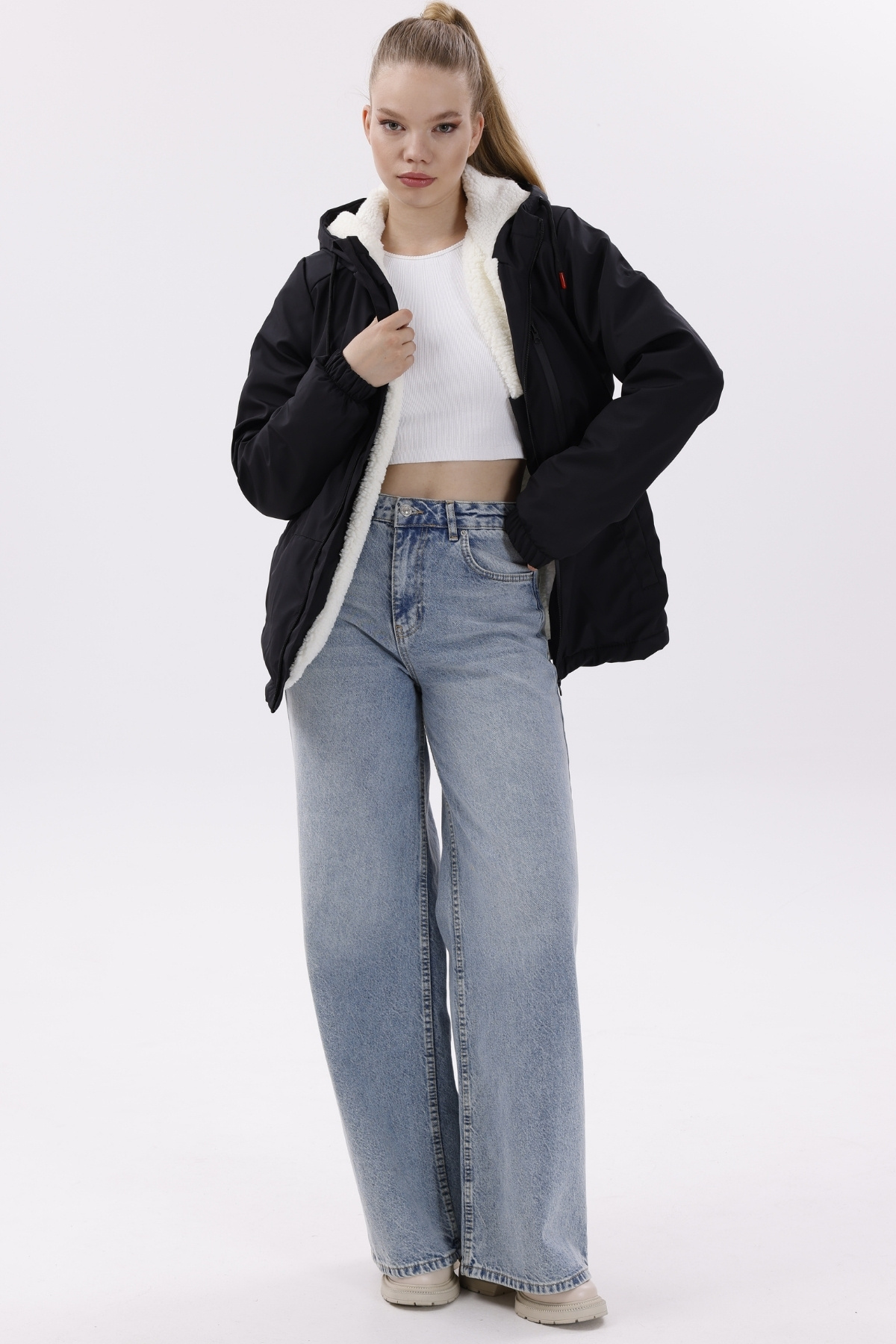 - Uzun kol tasarımı kolların tamamen korunmasını sağlarken, kapüşonlu yaka baş ve boyun bölgesini soğuktan korur.