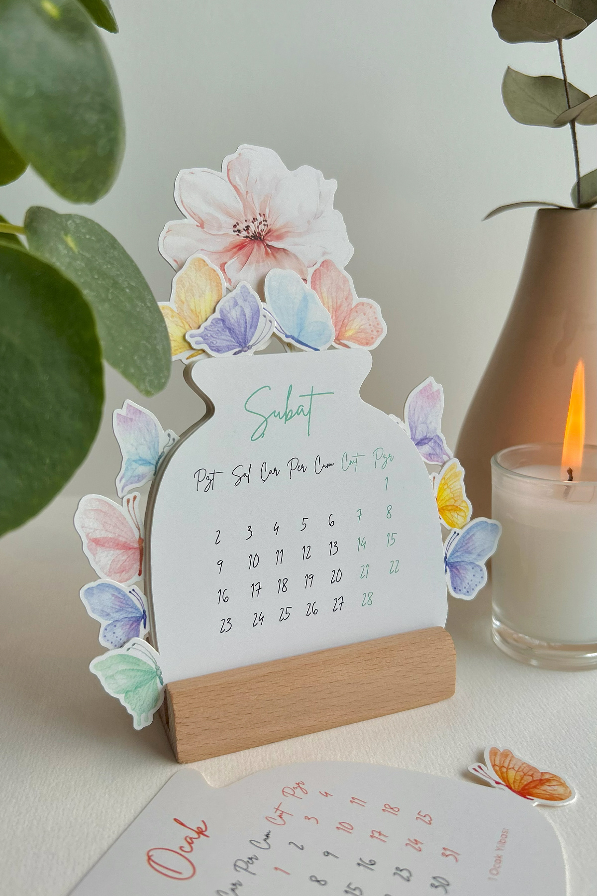 - 2025 yılına özel tasarımıyla, yılın her anını renklendiren suluboya illüstrasyonlu masa takvimi.