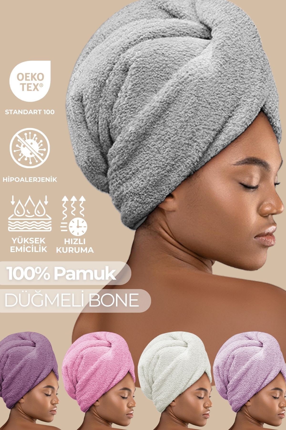 Düğme Lastikli Saç Havlusu, Saç Bonesi, Makyaj Bonesi, Yüz Bakım Havlusu, Banyo Sonrası Saç Kurutma