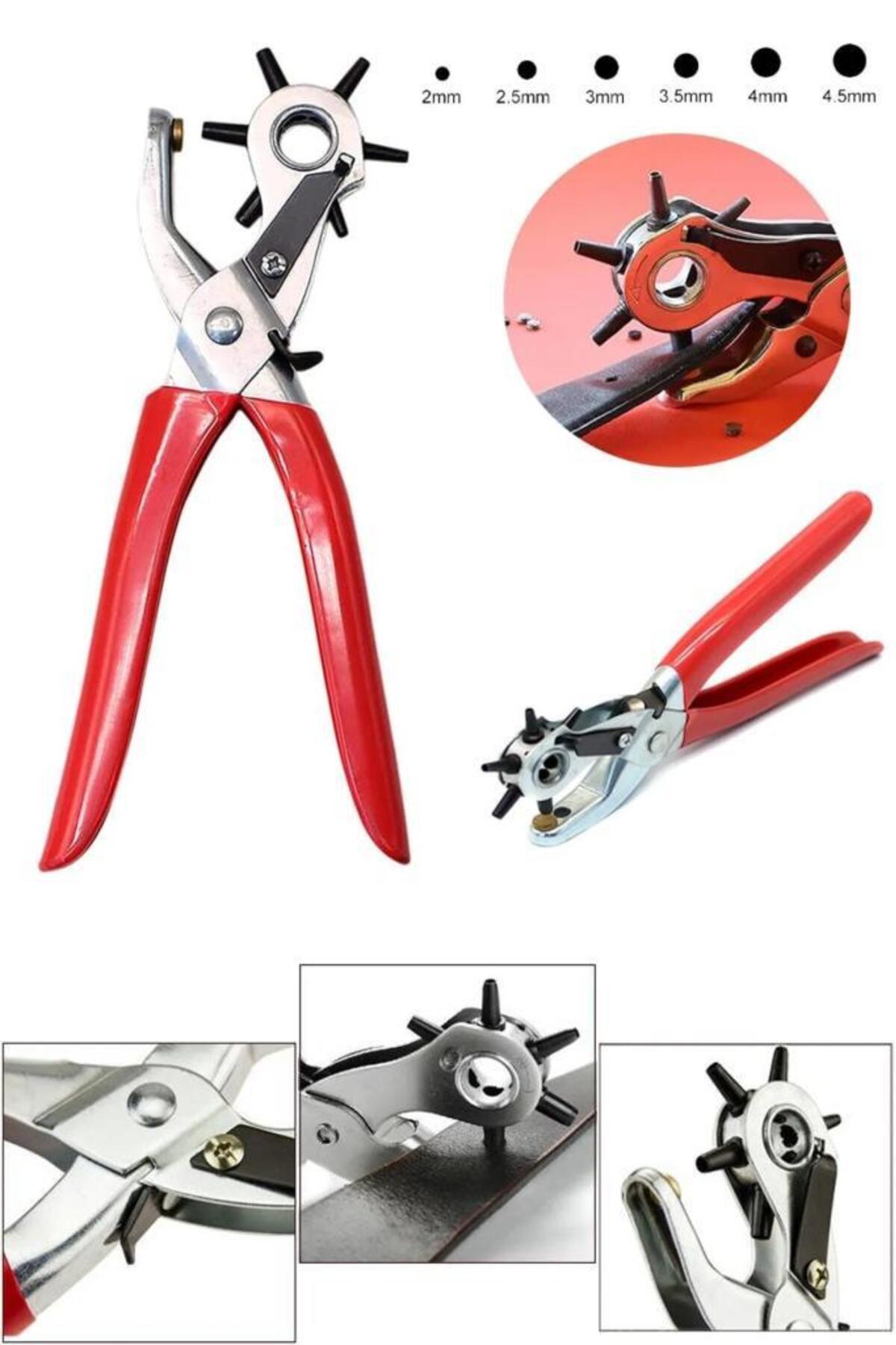1 Adet 6 Başlıklı Kemer Delme Pensesi Deri Pensi Saat Kayışı Delici Yuvarlak ve Düz Delik Açıcı Alet Artık kemerinizi delmek için bıçak, tornavida ve benzeri aletler ile parmak veya kemerlerinize zarar vermeye son verin.