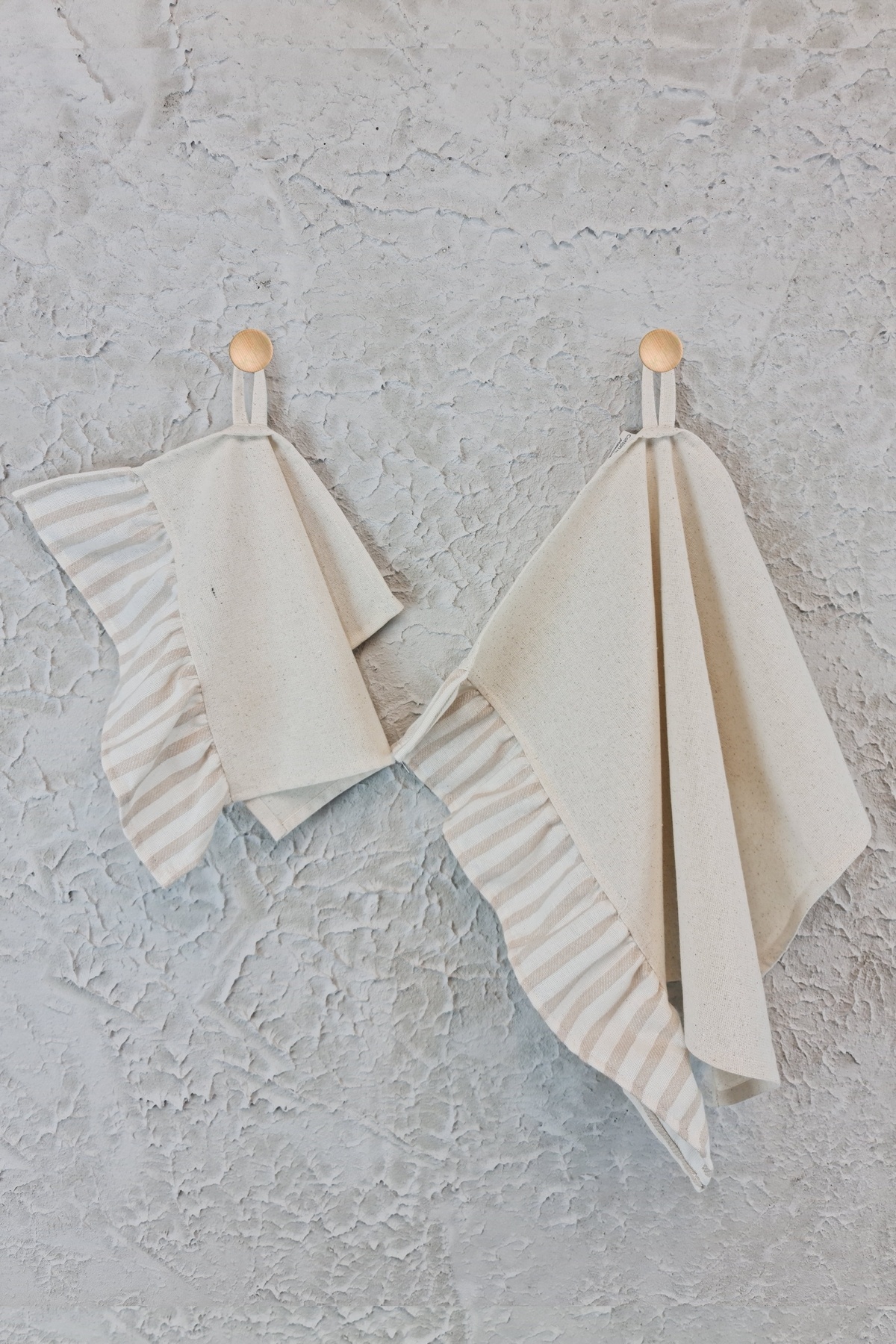 • Paket içeriği Ürün Ölçüsü 40x60 Cm ve 25x35 Cm 2 adet Kenar Şeritleri Fırfırlı kumaş ile yapılmış kurulama bezi gönderilir.