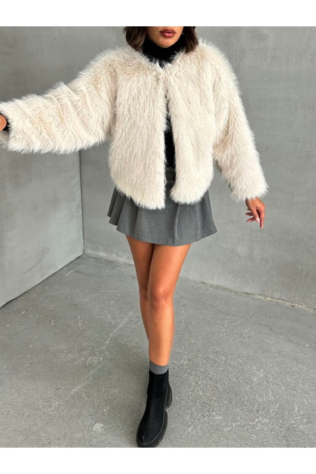 Yumuşak Dokunuşlu Oversize Premium Peluş Beyaz Mont