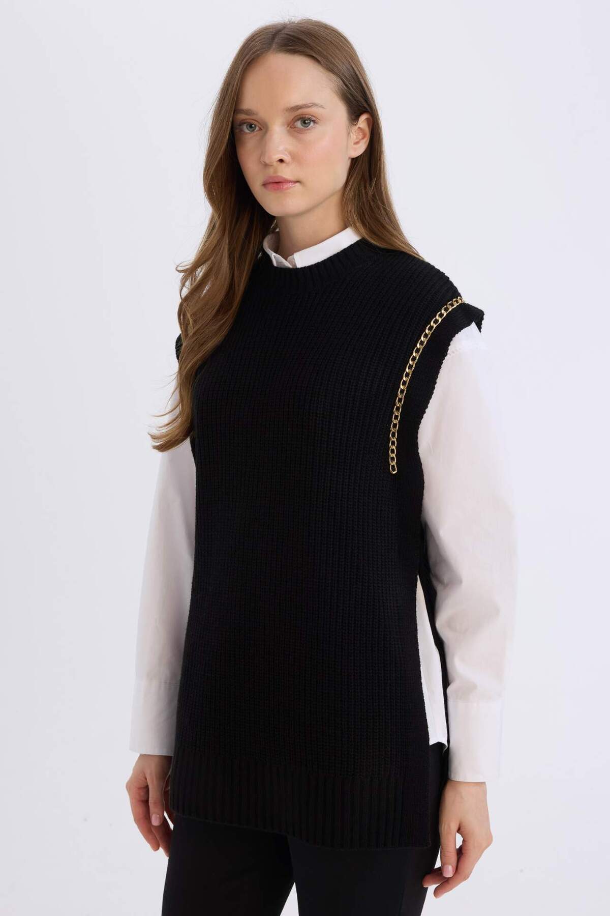 Şık ve şık bir görünüm için ideal olan Yarım Balıkçı Yaka Yırtmaçlı Süveter, gardırobunuzun vazgeçilmezi olmaya aday.