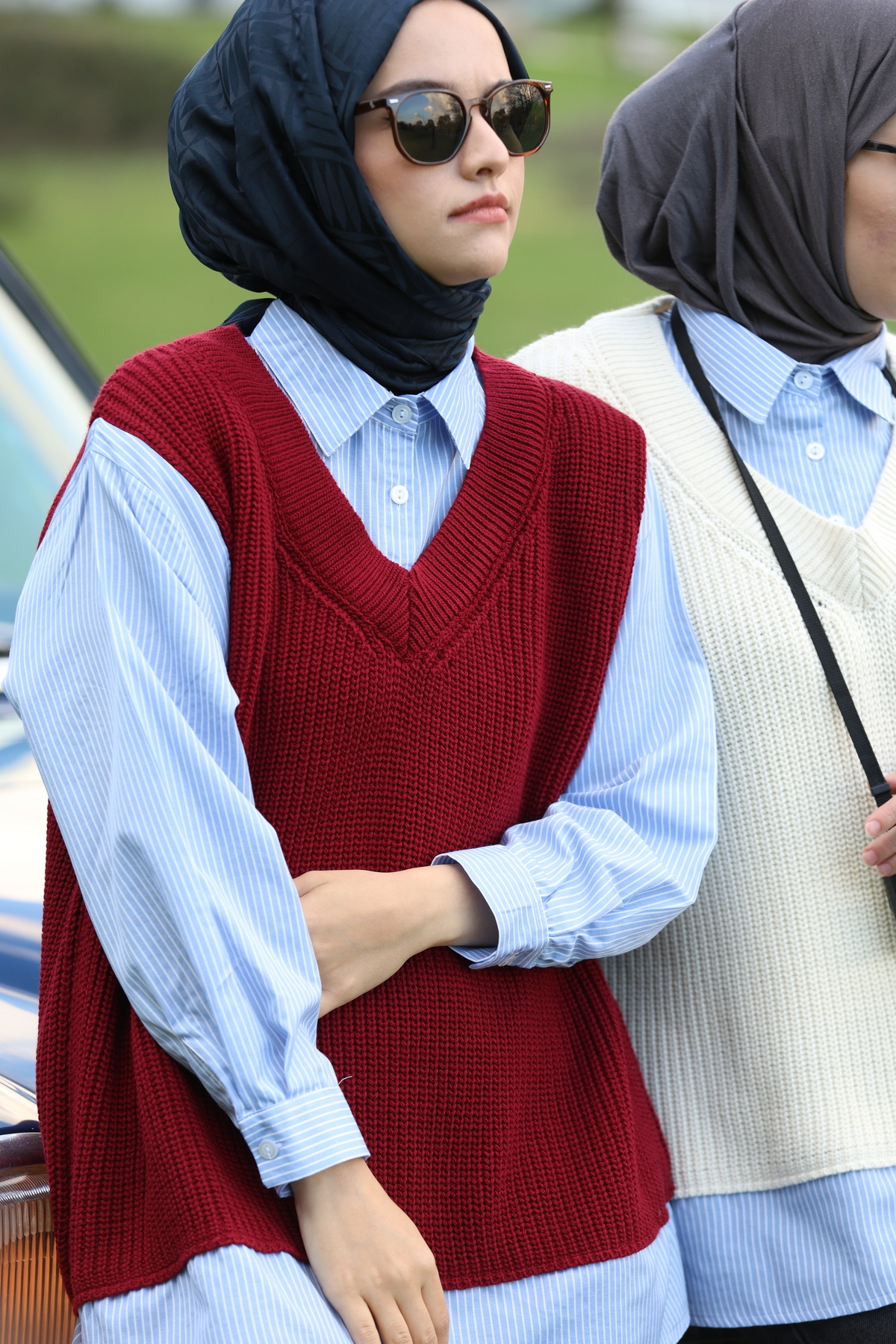 - Standart kalıp tasarımıyla her vücut tipine uyum sağlayan gömlek garnili triko süveter.