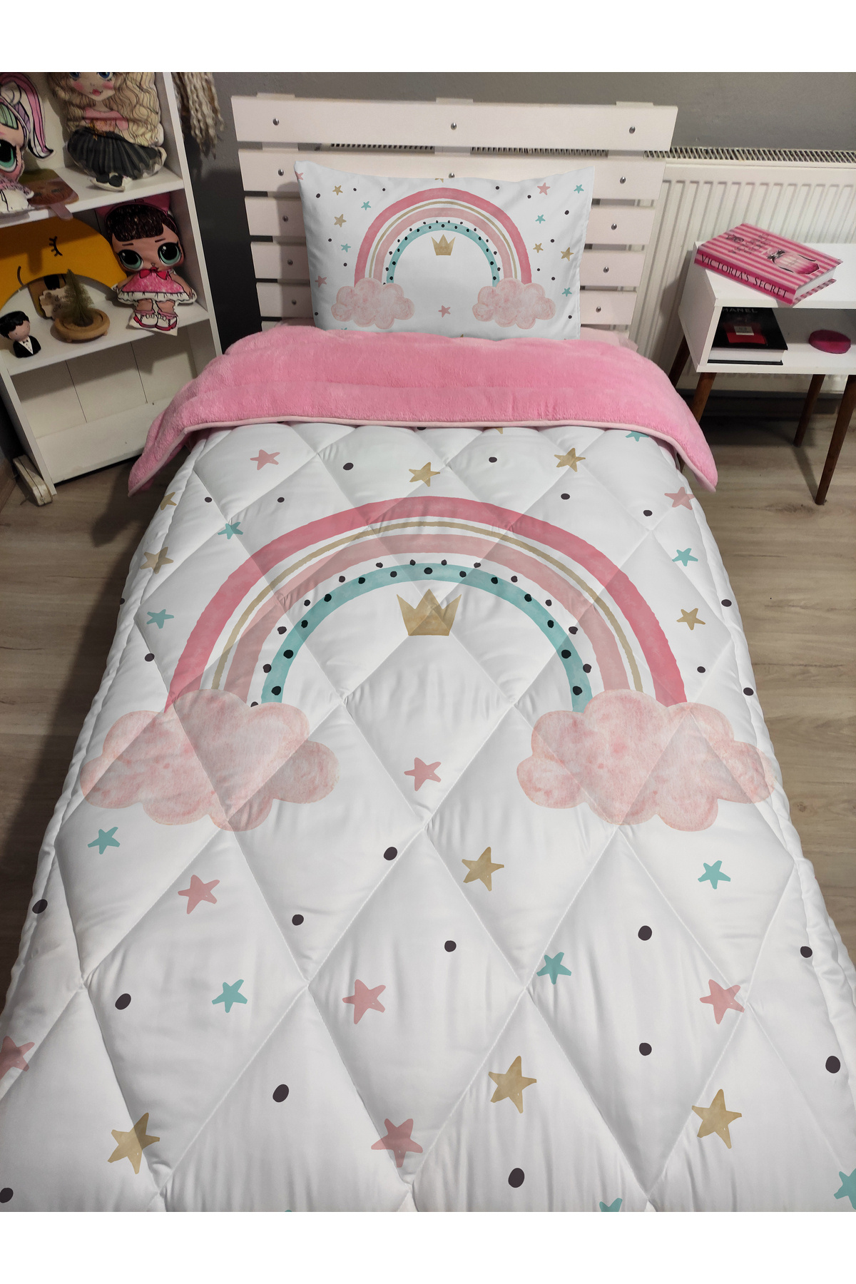 Welsoft Pofuduk Çift Taraflı GÖKKUŞAĞI Desenli Tek Kişilik Yorgan Uyku Seti