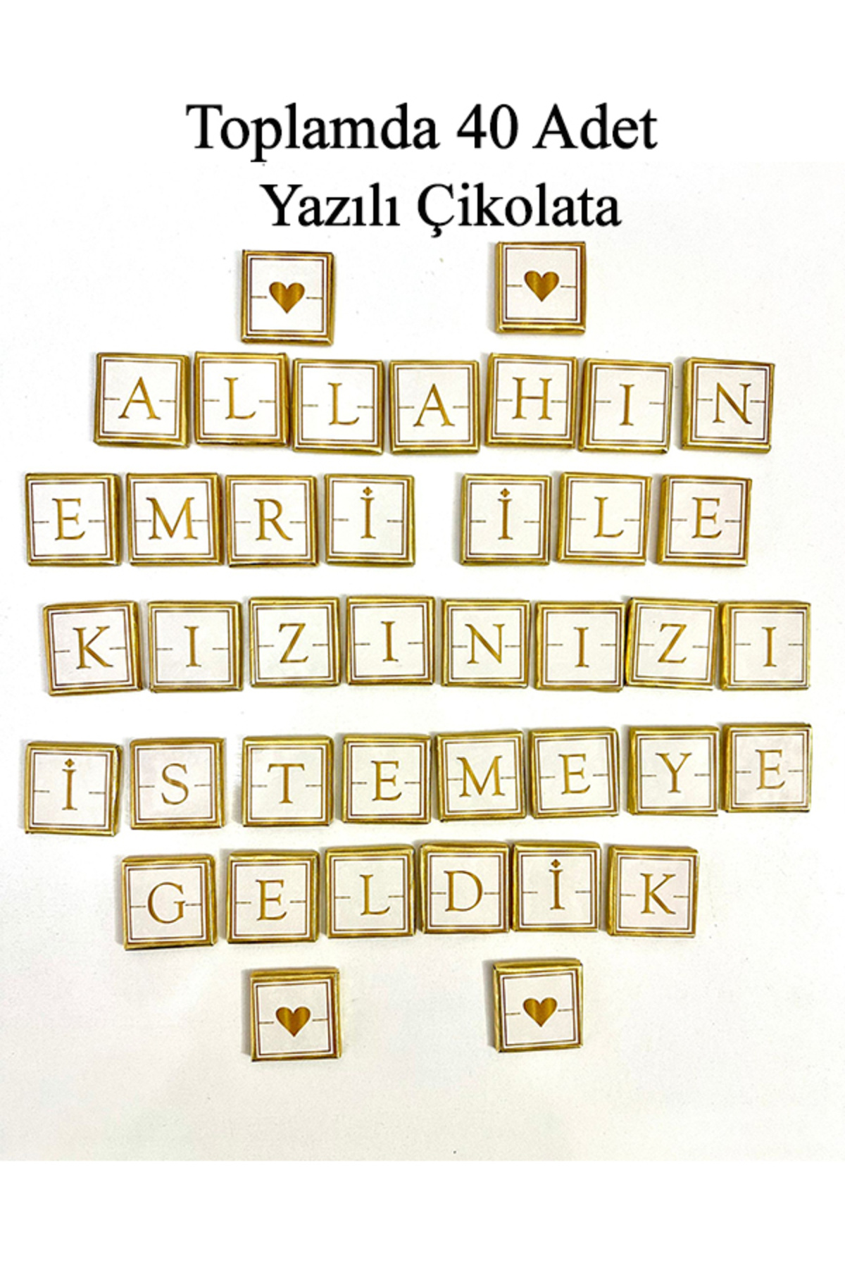 - Özel gününüz de sevdiğinize anlamlı bir hediye olarak sunabileceğiniz, "İsteme Çikolatası" ile sevginizi ve niyetinizi dile getirin. - Allah'ın emri ile kızınızı istemeye gelen bu çikolatalar, özel gününüzde unutulmaz bir anı olarak kalacak. - 40 adet madlen çikolata içeren bu set, hem şık hem de lezzetli bir ikram sunar.