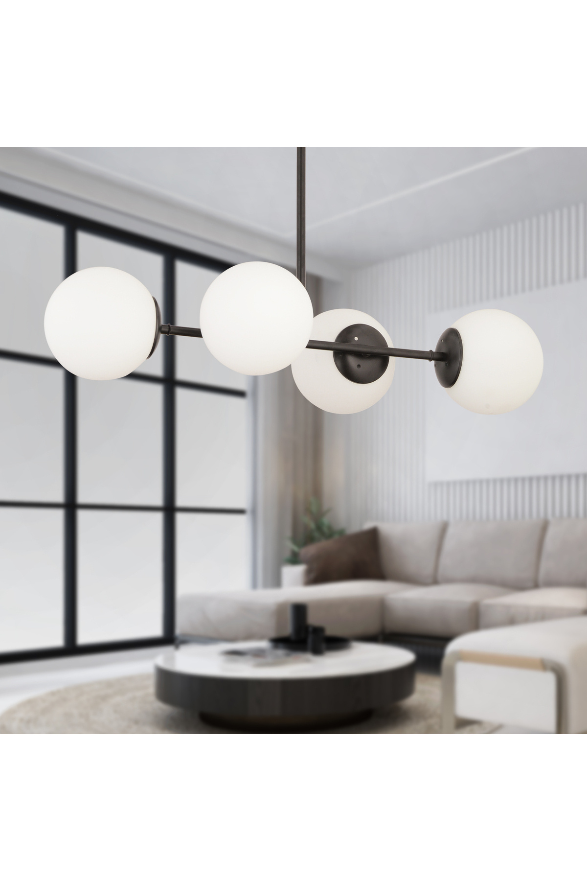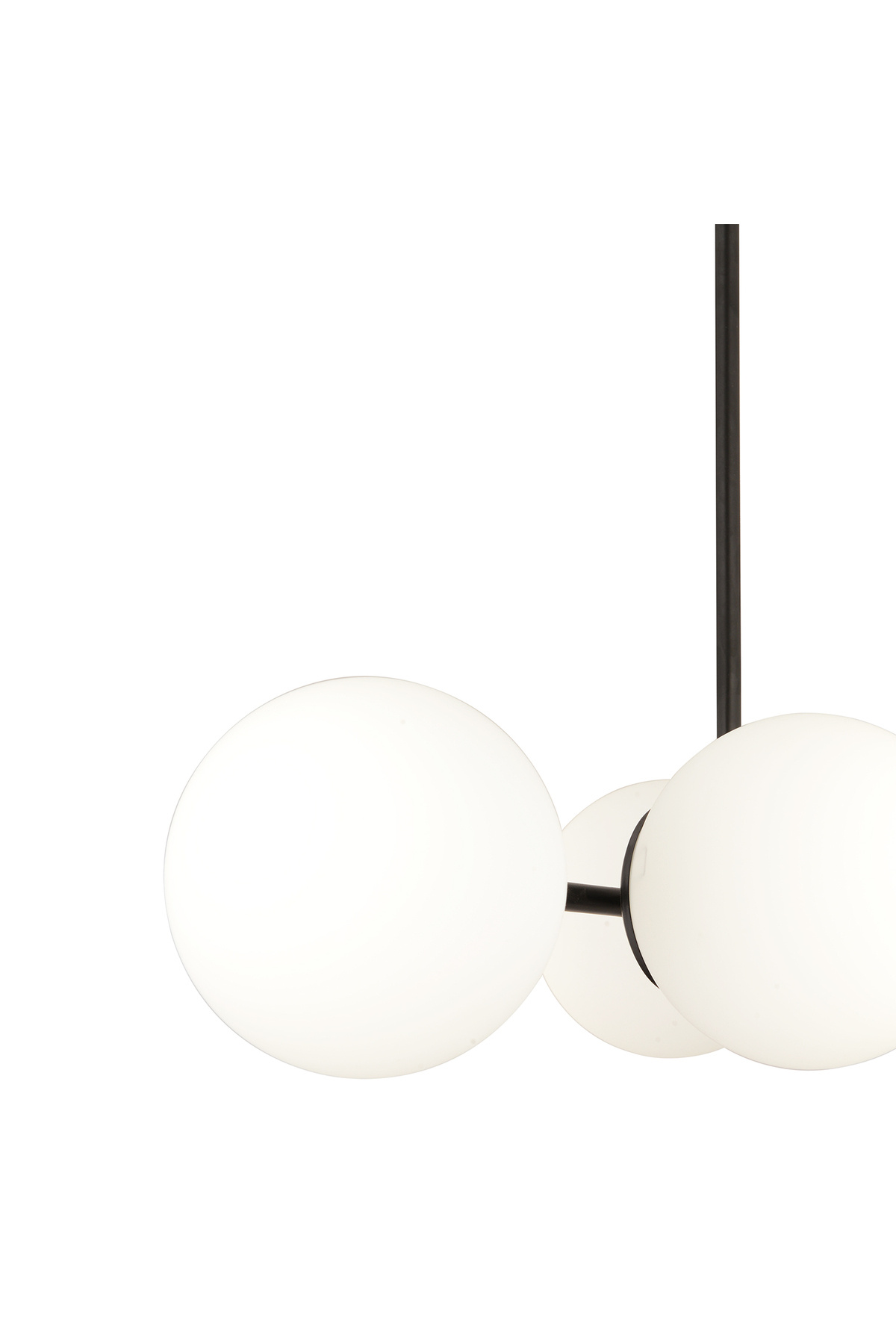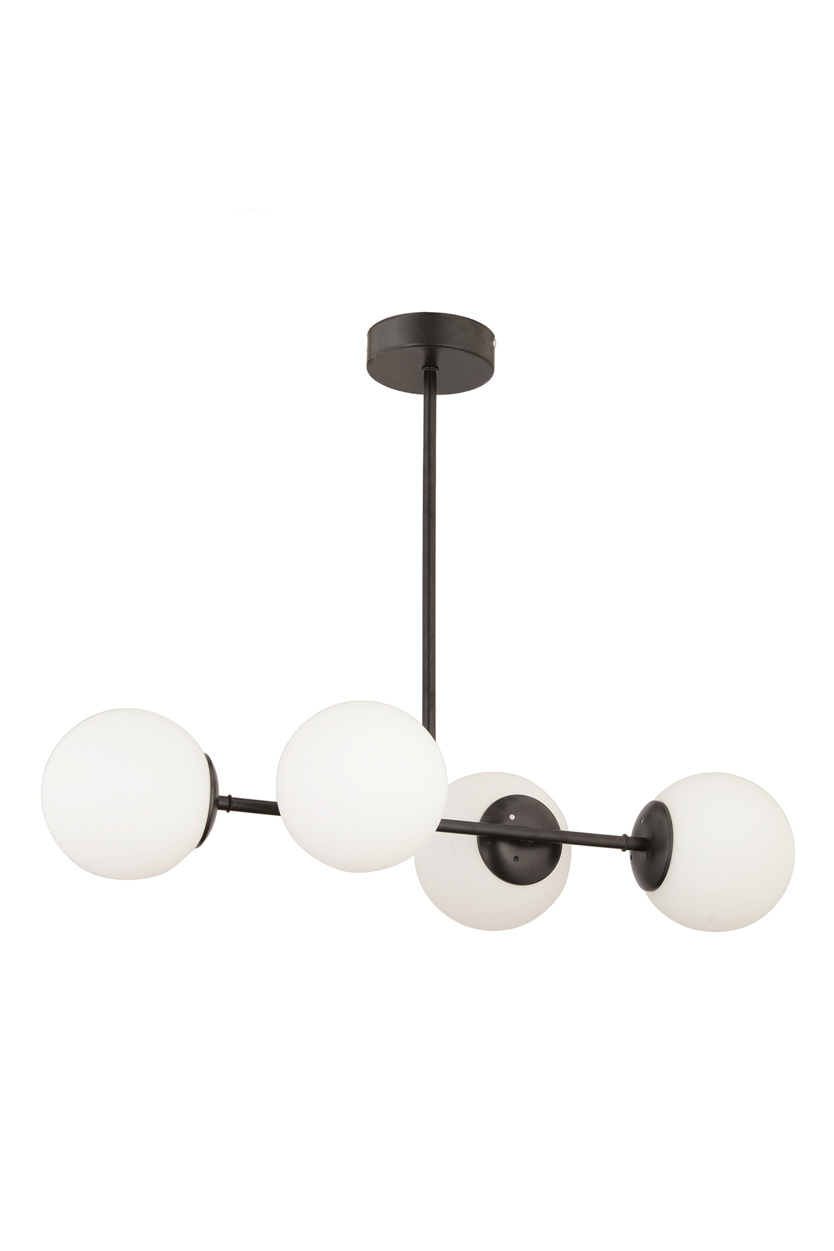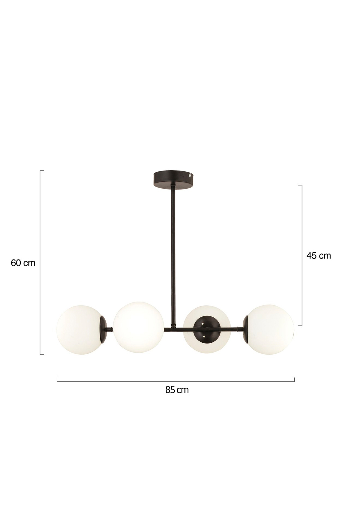 Ürün Özellikleri: En: 85 cm Boy: 67 cm Renk: Siyah Gövde Malzemesi: Metal Başlık Malzemesi: Cam Duy Tipi: E27 (Ampuller ürüne dahil değildir) Cam başlıkların verdiği yumuşak ışık, bulunduğunuz ortama sıcak ve huzurlu bir ambiyans katarken