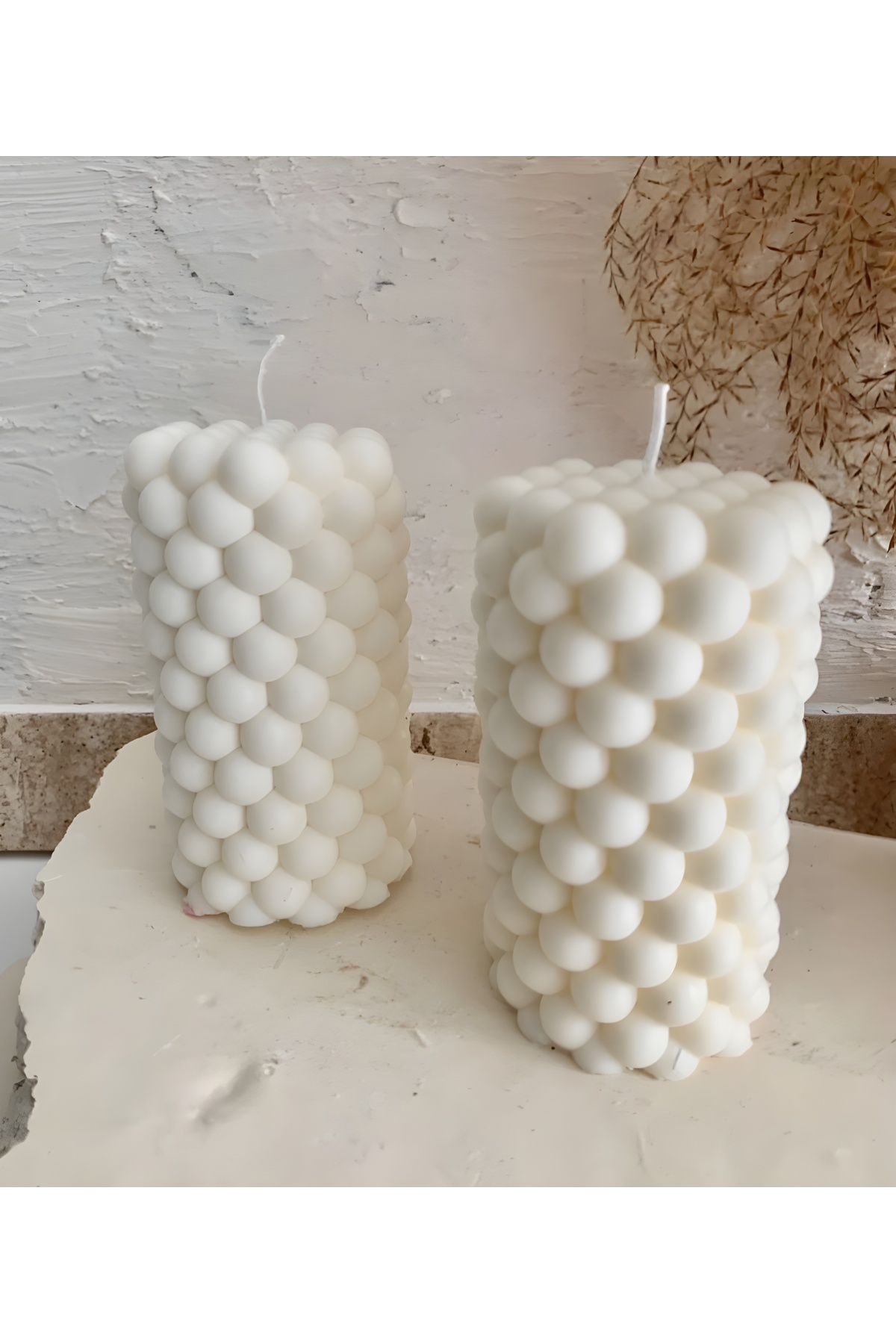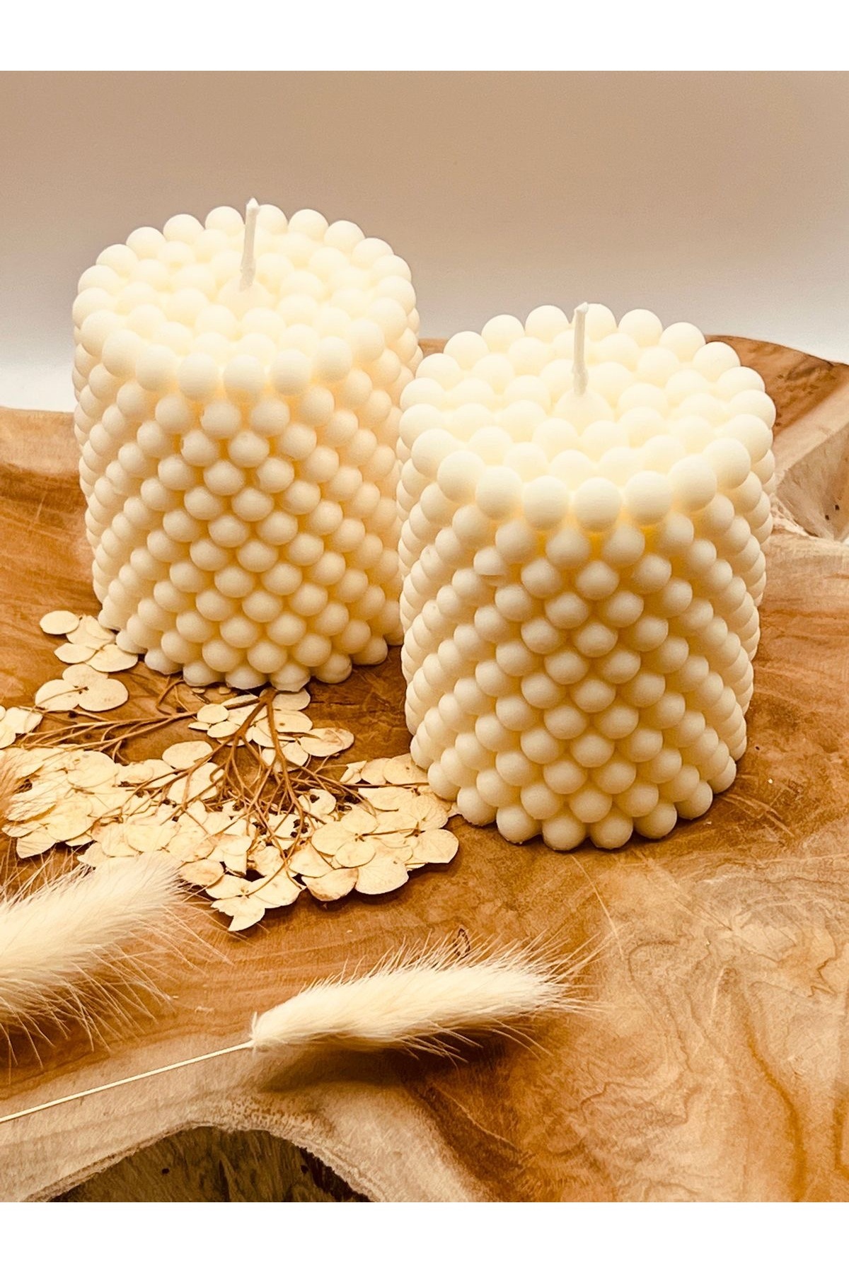 - İki adet bubble mum seti, dekoratif kullanım için idealdir ve odanızda şık bir atmosfer yaratır.