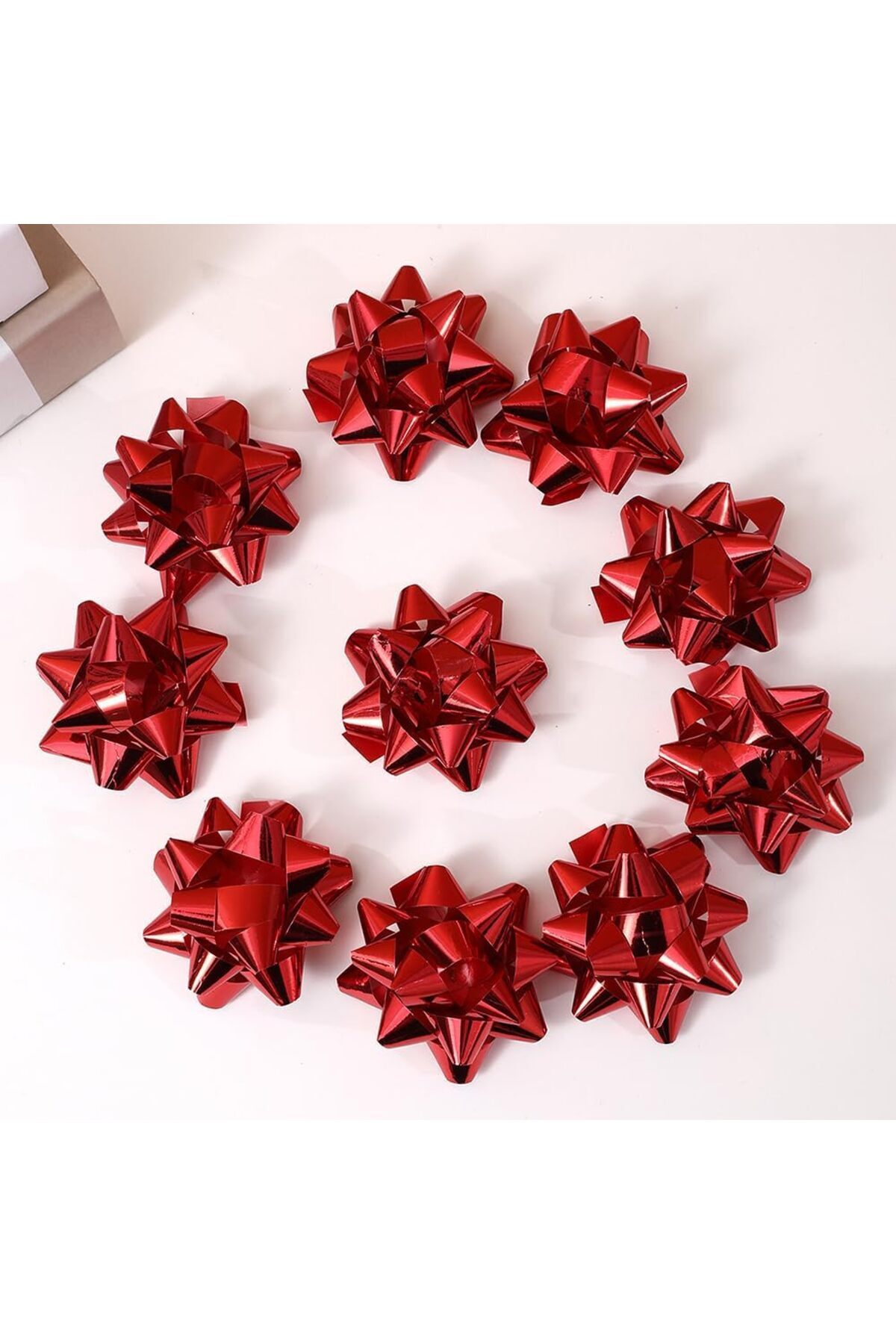 - 10 adet metalik kırmızı fiyonk çekyıldız hediye paketi süsü, özel günlerde hediyelerinizi şık bir şekilde süslemek için idealdir.