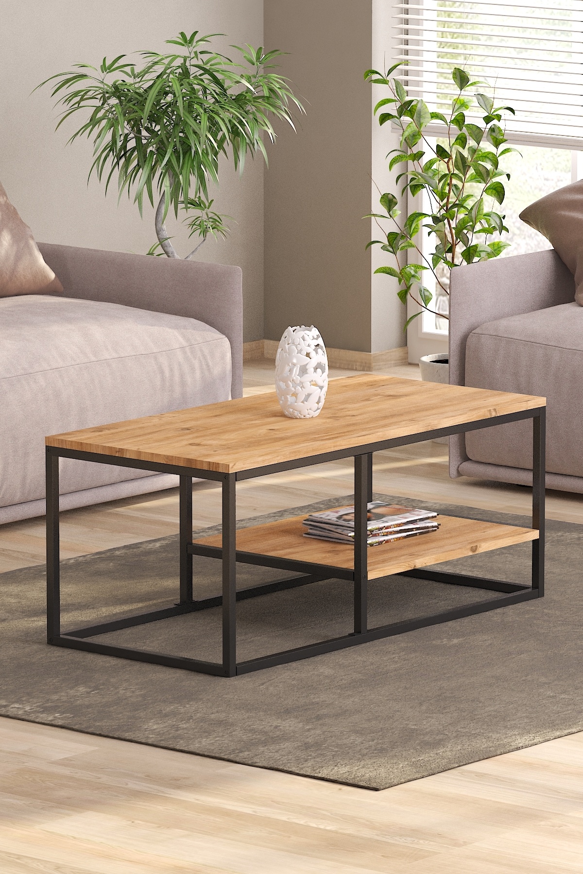 Metal İskeletli Atlantik Çam 2 Raflı Orta Sehpa