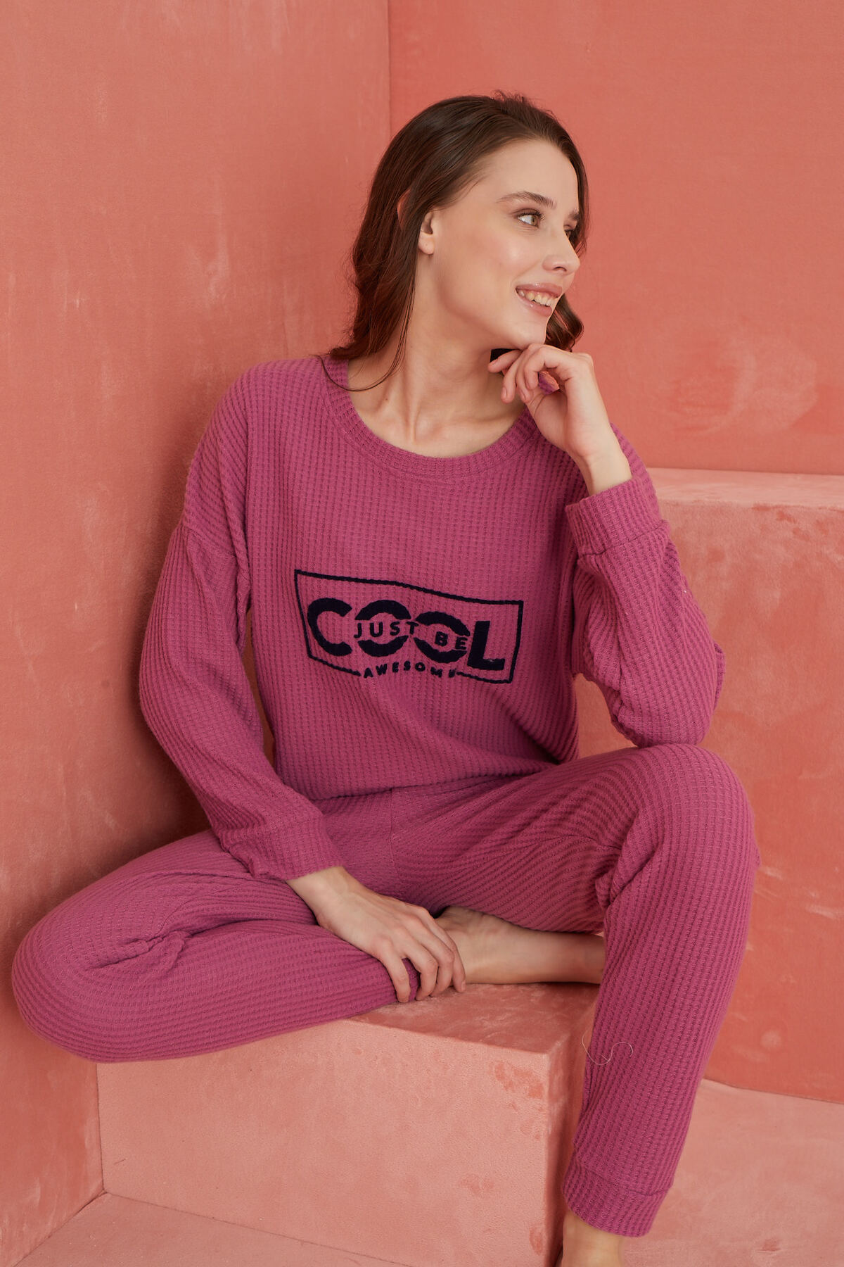 İki parçadan oluşan set, hem tişört hem de pantolon olmak üzere tam bir pijama takımını tek pakette sunar.