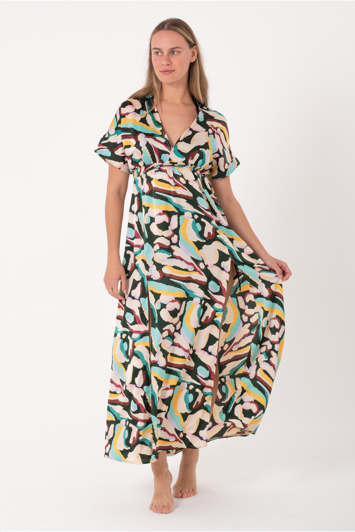 - Yırtmaç detayı sayesinde rahat hareket etme özgürlüğü sağlar ve yazın serinliğiyle konforlu bir kullanım sunar.