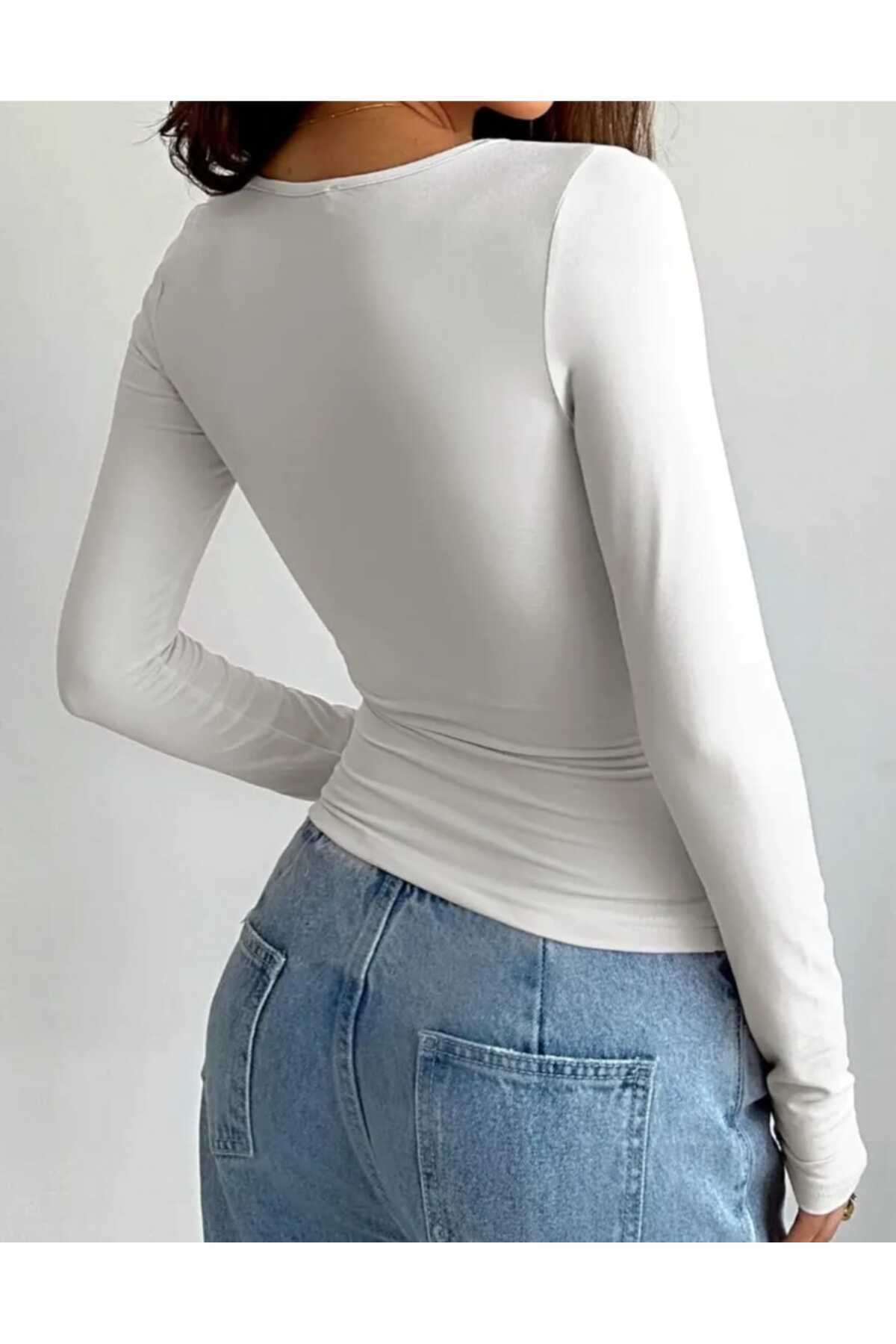 - Bisiklet yaka tasarımı ile modern ve şık bir görünüm kazandırırken, uzun kolları sayesinde mevsim geçişlerinde ideal koruma sunar.