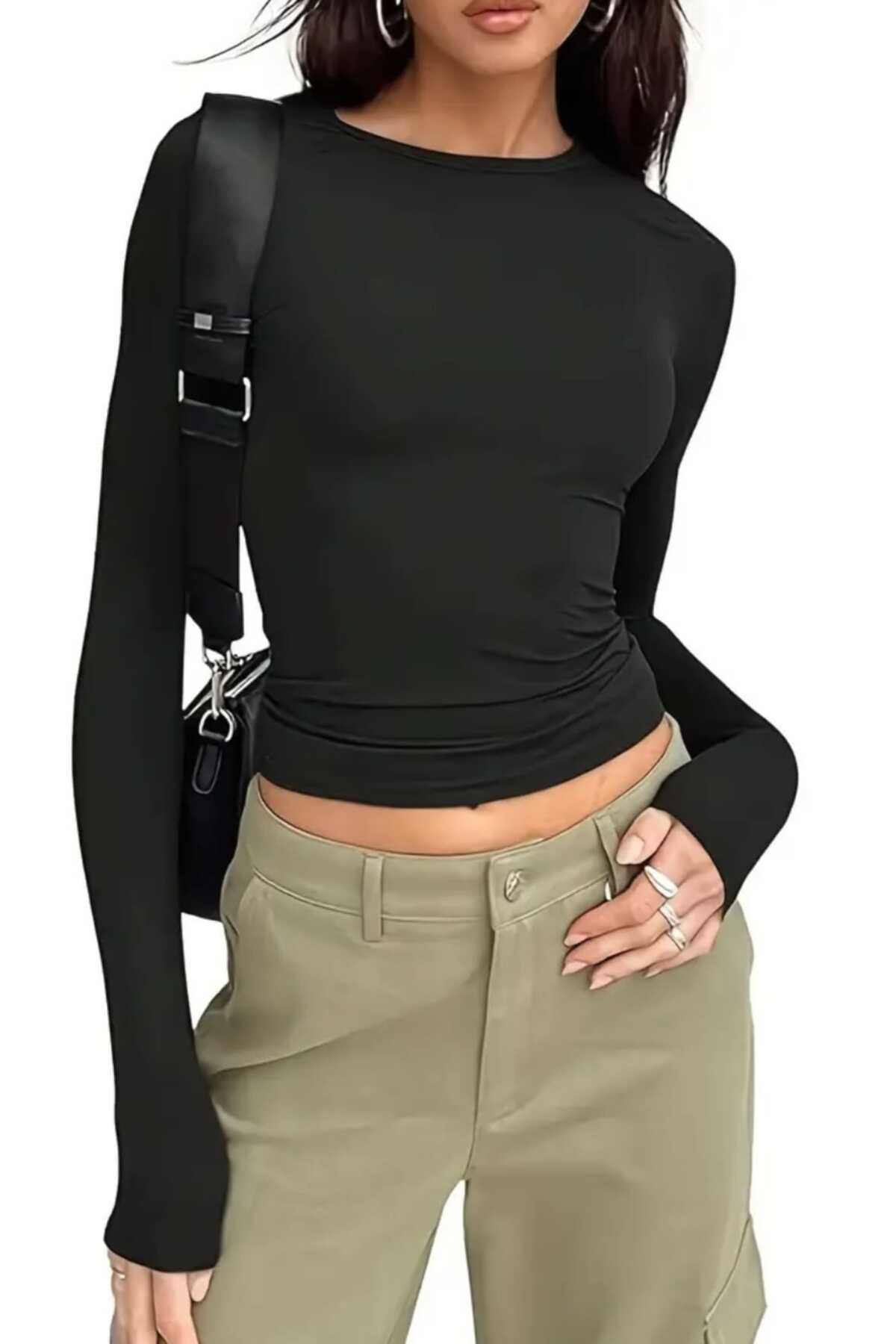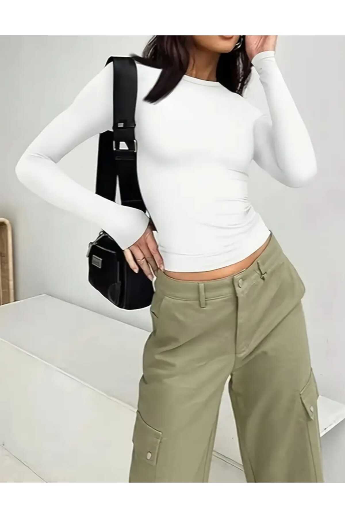 - Bisiklet yaka kesimi ile modern ve şık bir görünüm sunan bu crop body, sportif şıklığınızı tamamlar.