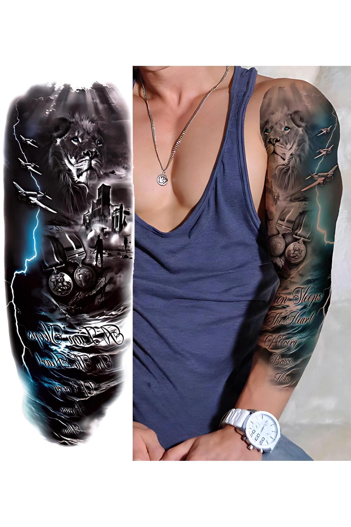 TAM BOY KOL KAPLAMA ASLAN SAVAŞ VE HATIRALARI KOL BACAK İÇİN GEÇİCİ DÖVME