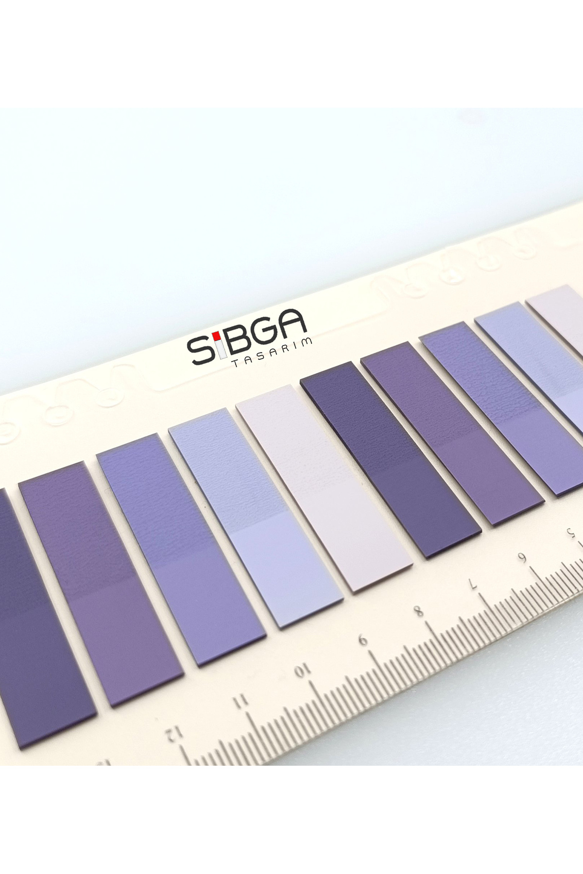 mor Yapışkanlı not kağıdı ve mor cetvelli renkli şeffaf postit ile mor şeffaf yapışkanlı postit çalışma masanızı organize edin ve verimliliğinizi arttırın.