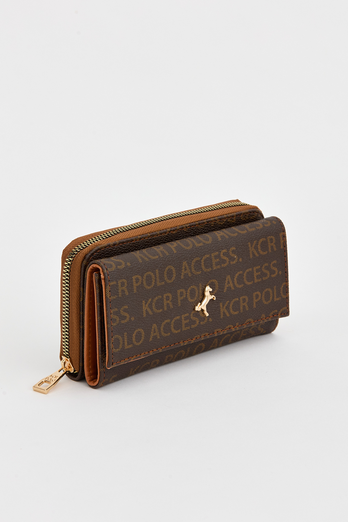 Kadın Büyük Boy Yazılı Polo Baskılı Çok Gözlü Bol Karlıklı Bozuk & Kağıt Para Bölmeli Kartlık Cüzdan