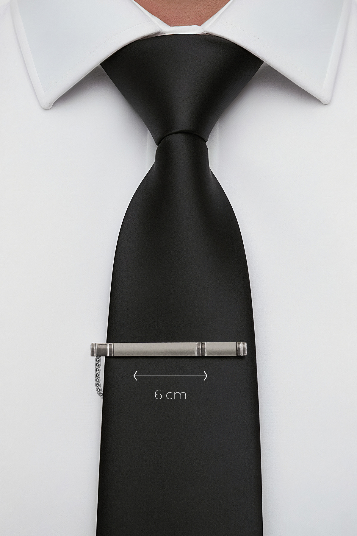 Sade çizgileri ve parlak metal detaylarıyla dikkat çeken bu zincirli kravat iğnesi, zarafetin gücünü minimal bir yorumla sunuyor.