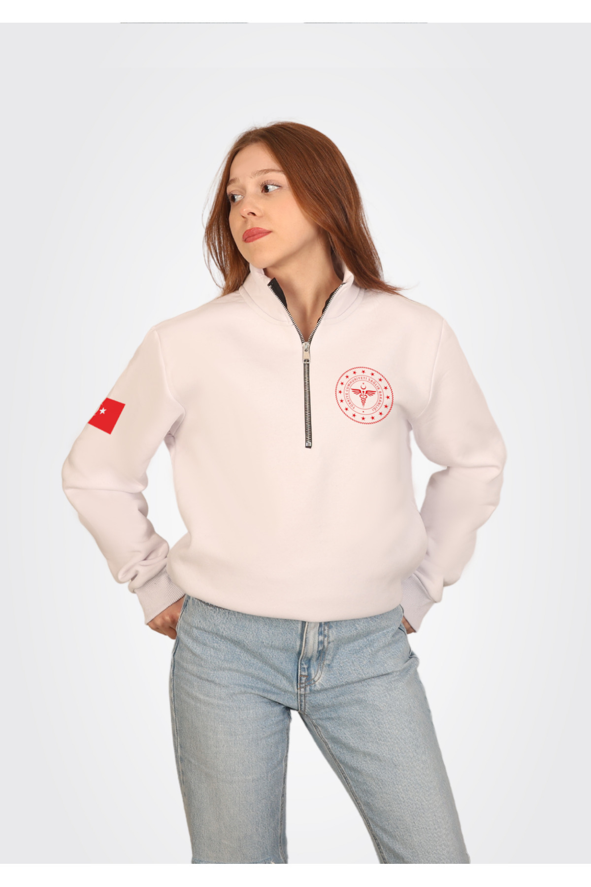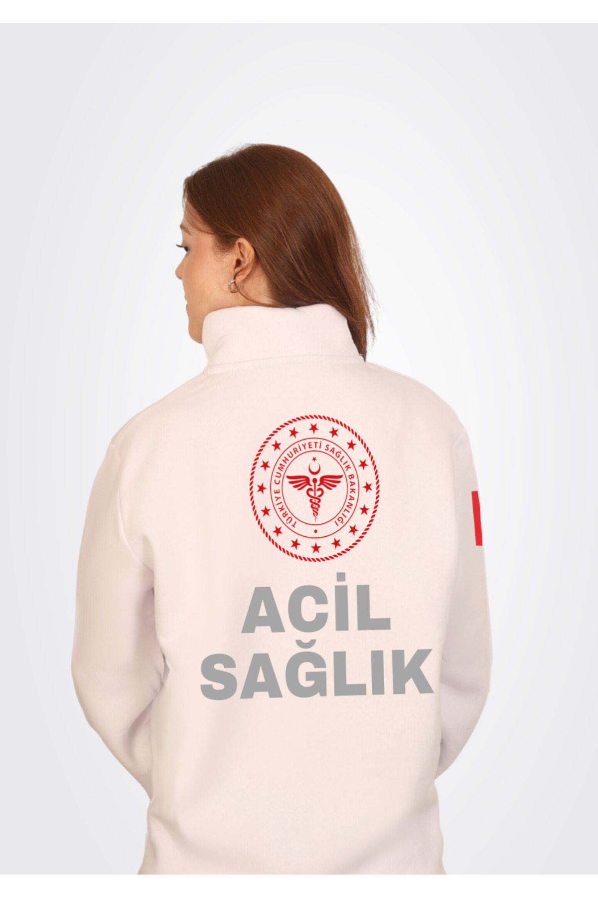 112 Acil Sağlık Yarım Fermuar Geniş Kalıp Dik Yakalı 3 iplik Polarlı Sweatshirt