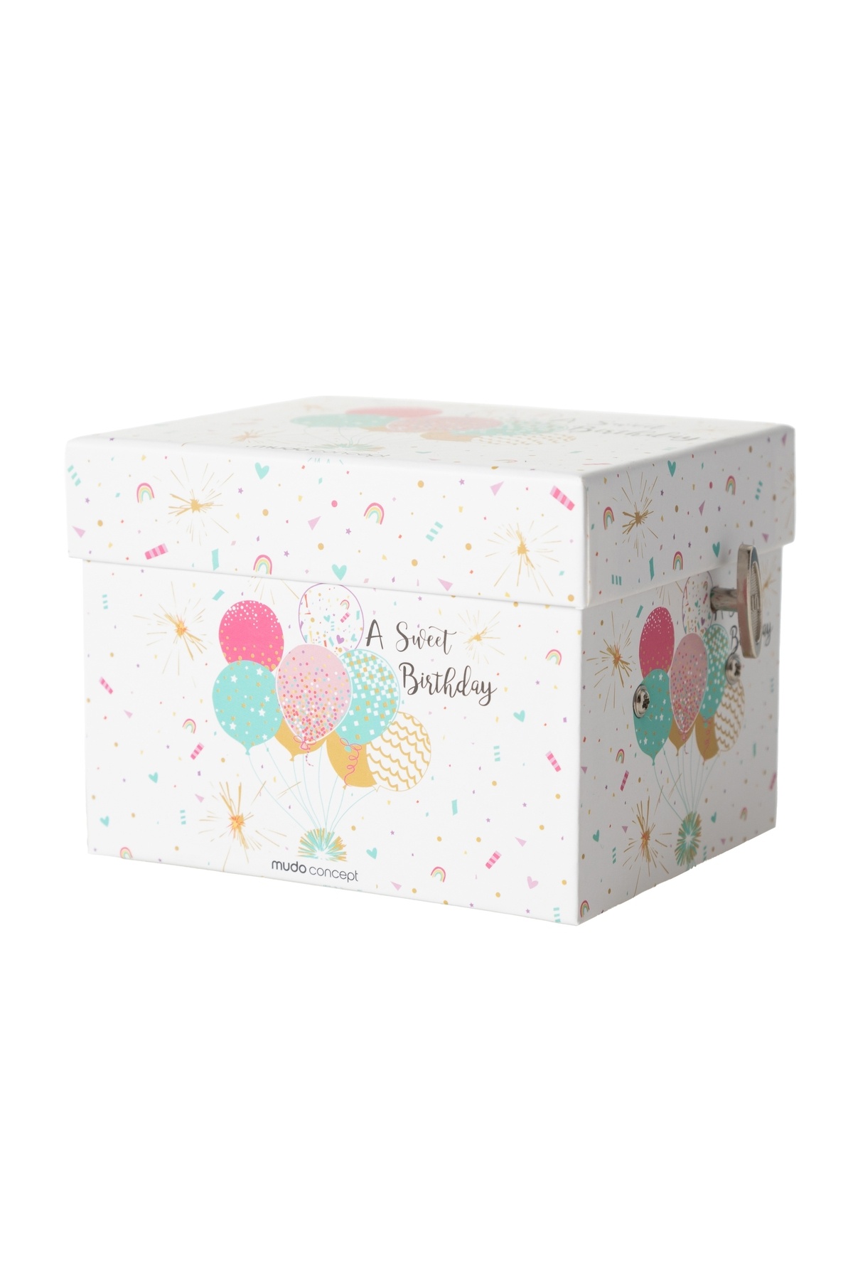 Kutusunun dışı da aynı parti teması ile süslenmiş olup, kurmalı müzik mekanizması sayesinde