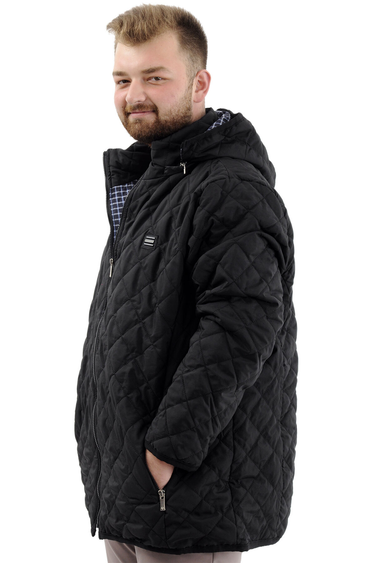 Mode XL Erkek Büyük Beden Kalın Kapitone Mont Çıkarılabilir Kapüşonlu U24602 Siyah Süet