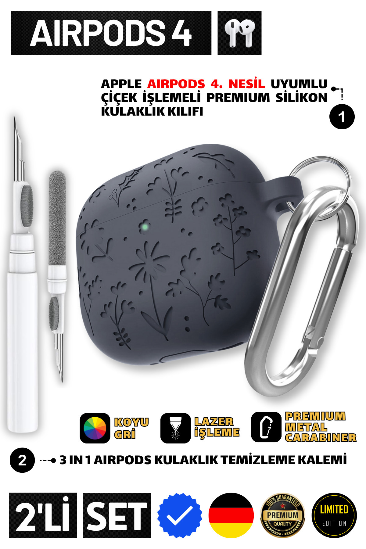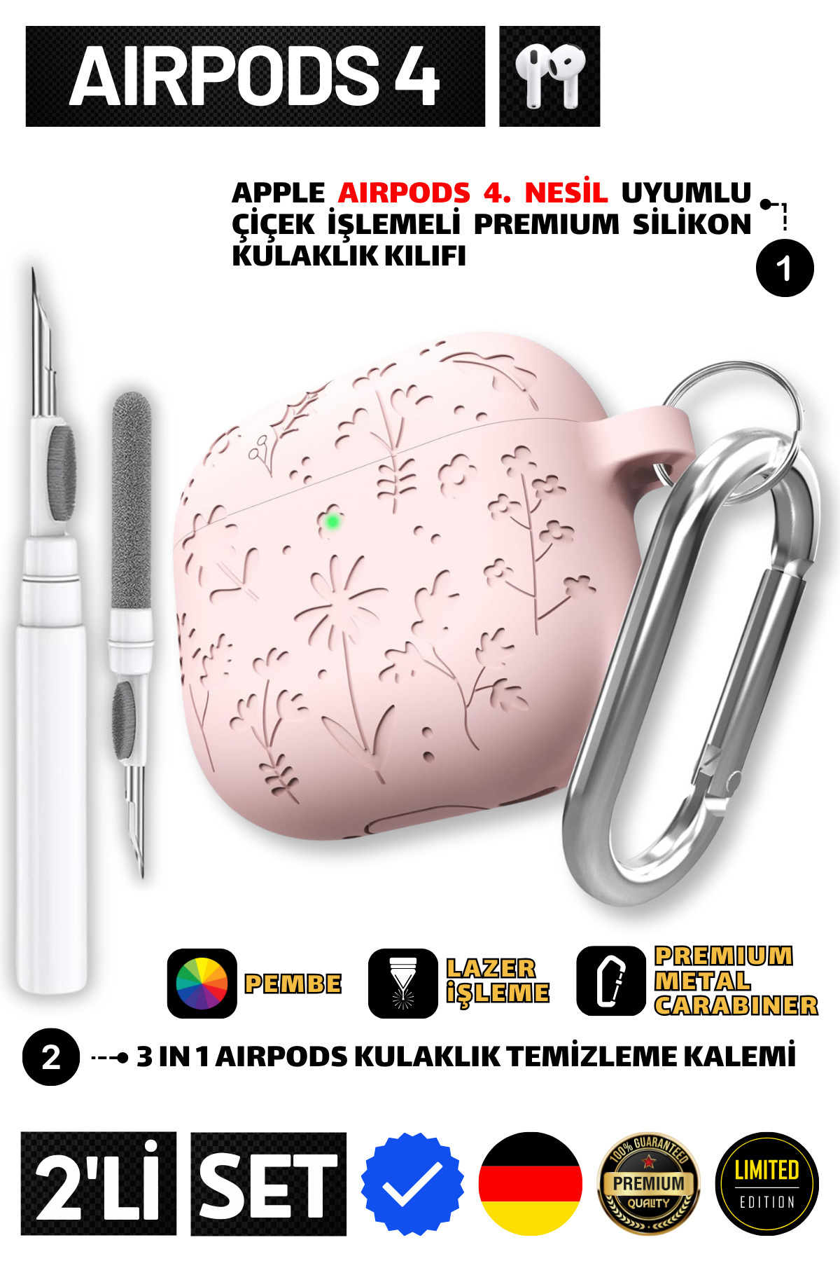 1 ADET | 4. Nesil Uyumlu Çiçek İşlemeli Premium Silikon Kulaklık Kılıfı