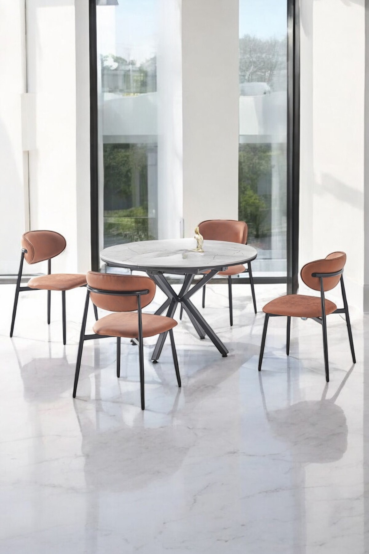 Arhor Serisi 100 X 100 Cm Açılabilir Lak Panel Beyaz Mermer Desen Masa Takımı Krem Sandalye