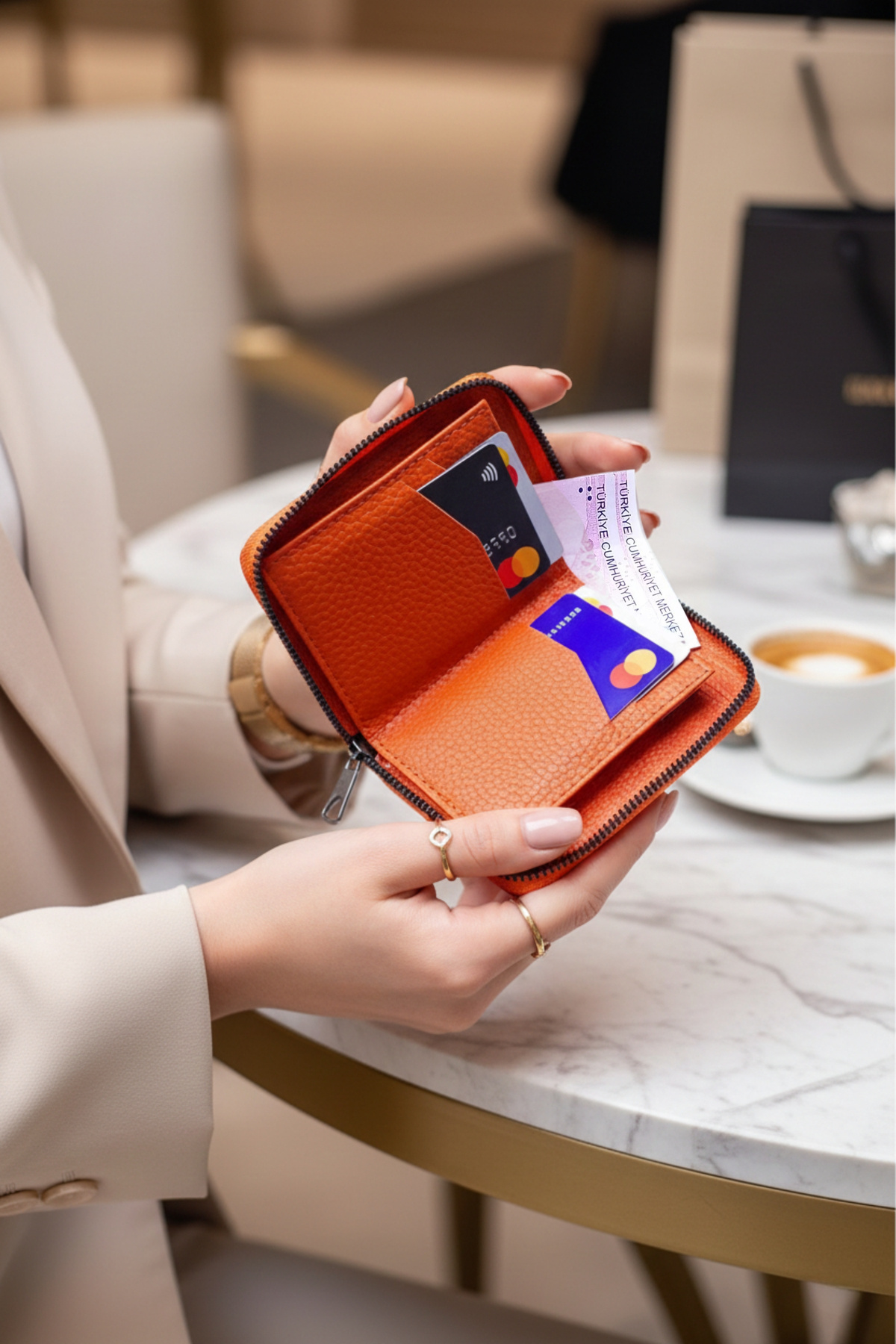 Unisex Vegan Deri Fermuarlı Turuncu Cüzdan Kartlık Ve Portföy Hediye Paketinde TSE standartlarına uygun olarak üretilmiştir.