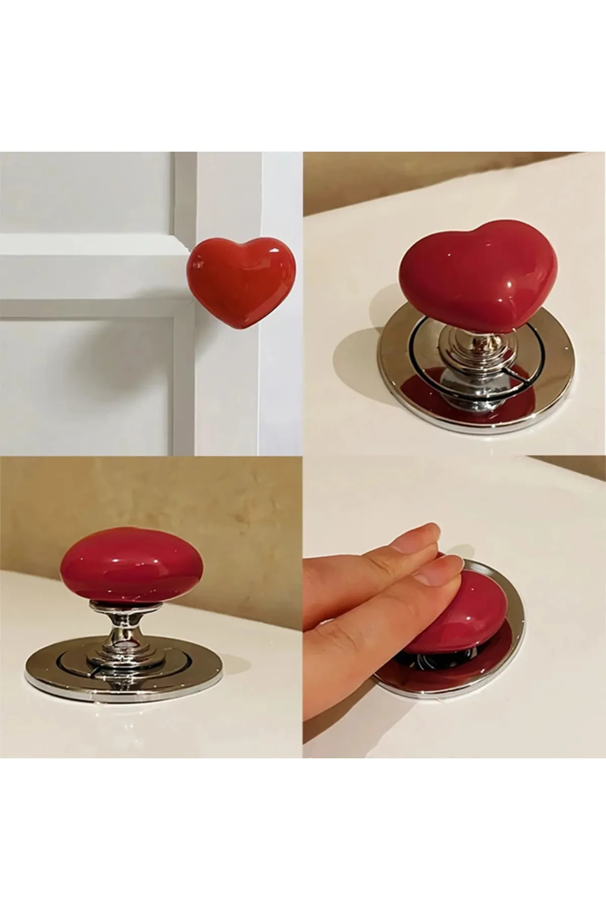 - Şık ve modern bir görünüm sunan kalp şeklindeki klozet kapağı kulpu, banyonuzun dekorasyonuna estetik bir dokunuş katıyor.