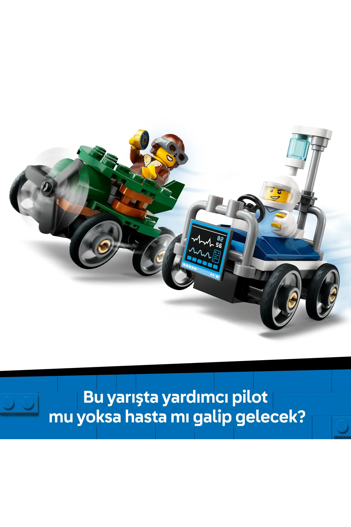 5 yaş ve üzeri yarış meraklısı çocuğunuzu, LEGO City Uçak, Hastane Yatağına Karşı Yarış Arabası Paketi (60459) ile ödüllendirin. Bu eğlenceli yarış arabası oyuncağı, 2 soapbox yarış arabası ve 2 minifigür içerir. Çocuklar, uçaktaki pilotu şaşırtıcı derecede hızlı hastane yatağındaki hastayla yarıştırabilir. Kim kazanacak? Efsanevi şehir yarışı aksiyonu için yerinizi alın! Bu LEGO soapbox yarış arabası seti, bir yapım klavuzu içerir. Çocuklar ayrıca modelleri inşa ederken 3 boyutlu yakınlaştırıp döndürebilecekleri, ilerlemelerini takip edebilecekleri, diğer oyun setlerini keşfedip kaydedebilecekleri LEGO Builder uygulamasıyla eğlenceli bir deneyimin keyfini çıkarabilir. LEGO City oyun setleri, sınırsız yaratıcı oyuna ilham veren havalı araçlar, gerçekçi yapılar ve eğlenceli karakterlerle doludur. Çocuklar, oyun olasılıkları dünyasını genişletmek için bu soapbox araba setini, LEGO City serisinin ayrı satılan diğer setlerine ekleyebilir.