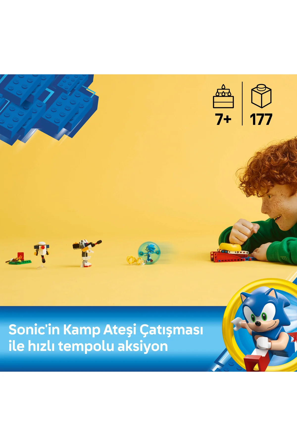 Video oyun hayranları için eğlence ve macera bir arada: LEGO Sonic the Hedgehog – Sonic'in Kamp Ateşi Çarpışması (77001) 7 yaş ve üzeri erkek ve kız çocukları için tasarlanmış bu koleksiyonluk LEGO Sonic the Hedgehog yapım seti, kamp ateşi alanı, hız küresinin yanı sıra bir adet hız küresi fırlatıcı içerir. Ayrıca Chaos Emerald, 3 Altın Yüzük ve bir Sonic minifigürü, ‘uçan’ G.U.N. Beetle robot drone, pozlanabilir G.U.N. Hunter robot figürü ve Tocky gibi Sonic dünyasının bilinen karakterlerinin oyuncakları bulunur. Etkileşimli ve özelliklerle dolu bir oyun seti! Bu LEGO Sonic yapım seti, çocukları ve Sonic hayranlarını Sonic ve düşman robotlarla yaratıcı rol yapma hikayeleri kumaya teşvik eder. Çocuklar kamp ateşinde dinlenmekten robotlarla savaşmaya, Tocky’yi kurtarıp 3 Altın Yüzüğü kazanmaya kadar birçok eğlenceli maceraya atılabilecekler. Ayrıca LEGO Builder uygulaması ile 3 boyutlu modelleri yakınlaştırma, döndürme ve ilerlemelerini takip etme gibi özelliklerle kolay ve sezgisel bir yapım deneyimi yaşayabilirler. Daha fazla eğlence için diğer LEGO Sonic setleriyle birleştirin! LEGO Sonic the Hedgehog serisinin ayrı satılan diğer setleriyle macerayı iki katına çıkarın. Bu Sonic LEGO seti, 7 yaş ve üzeri oyun sever erkek ve kız çocuklar için benzersiz bir hediye seçeneğidir.