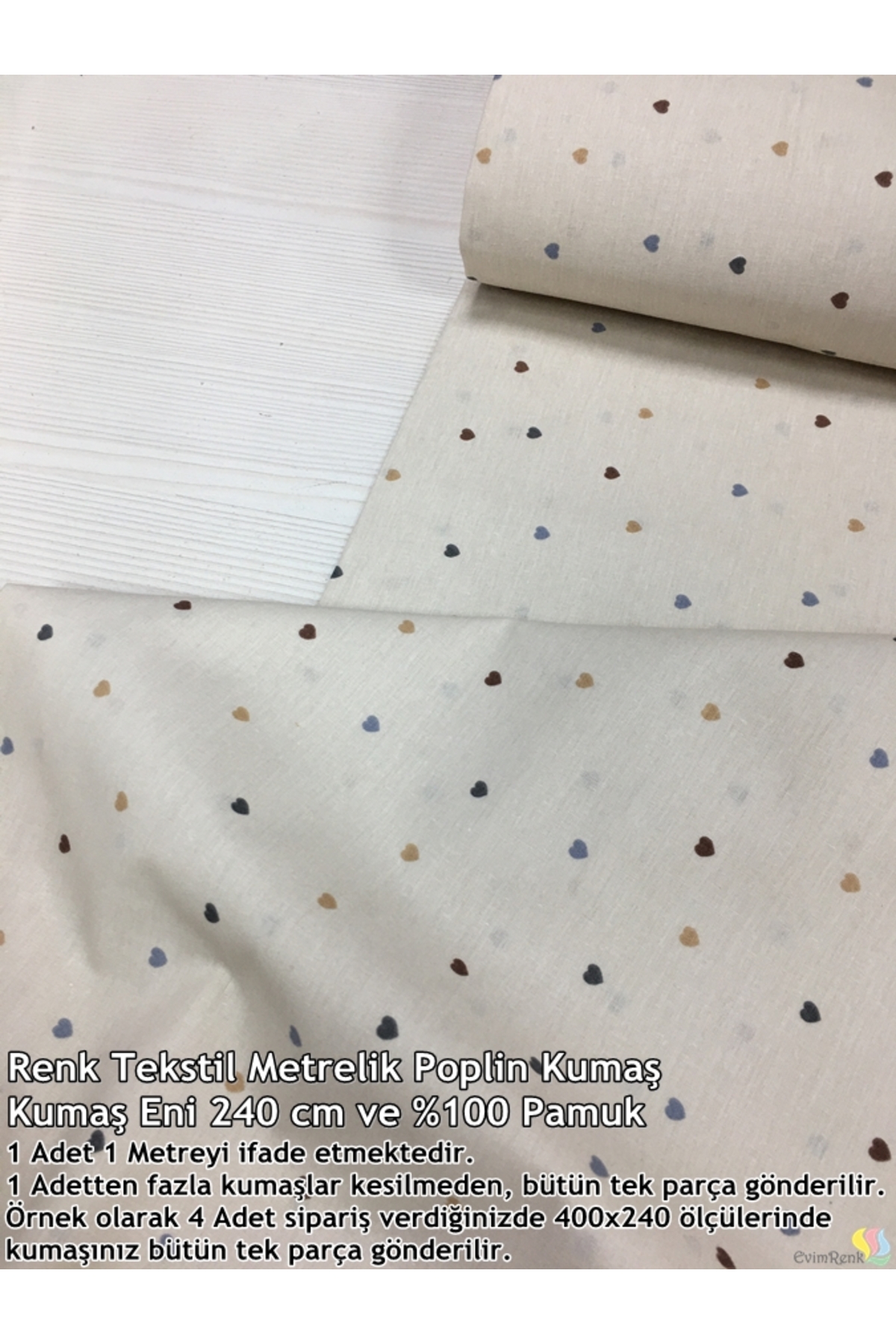 Minik Renkli Kalpler %100 Pamuk Metrelik Poplin Kumaş - Elbise - Nevresim - Çarşaf - Hobi