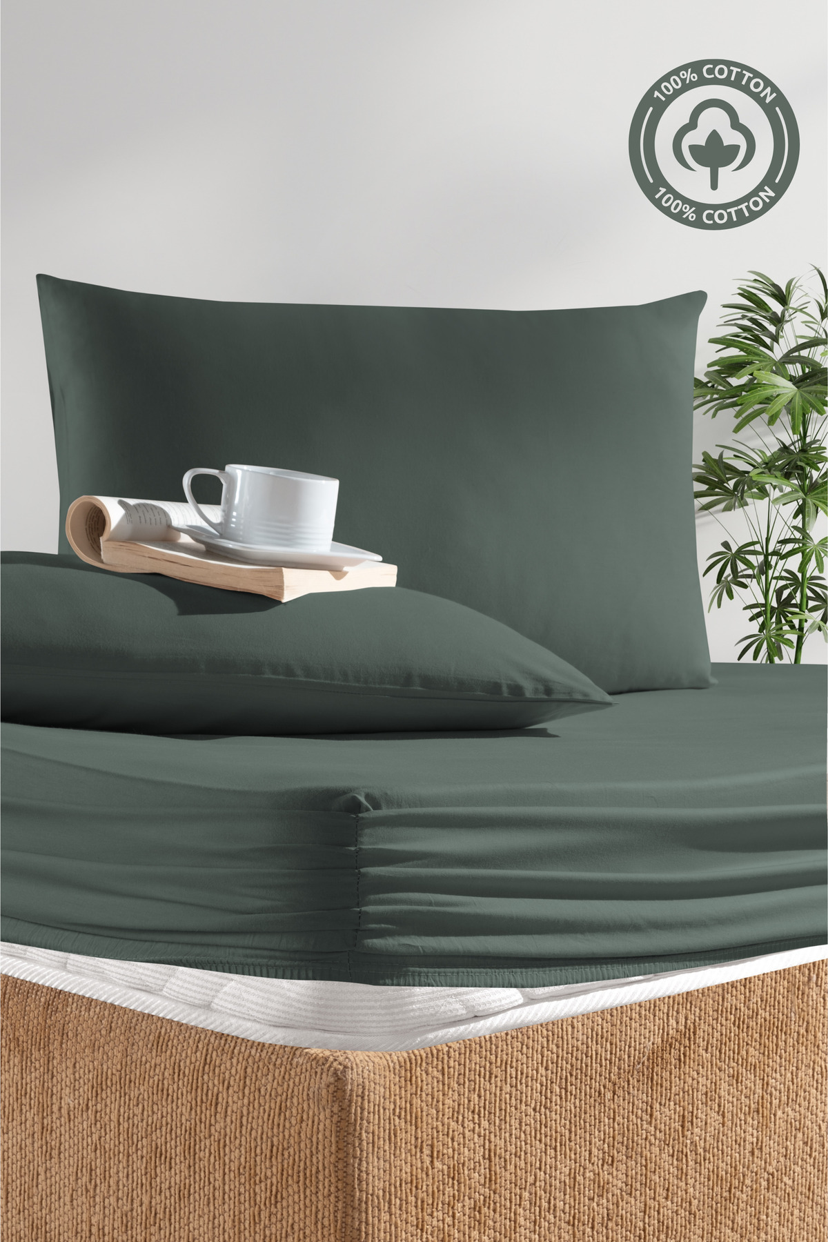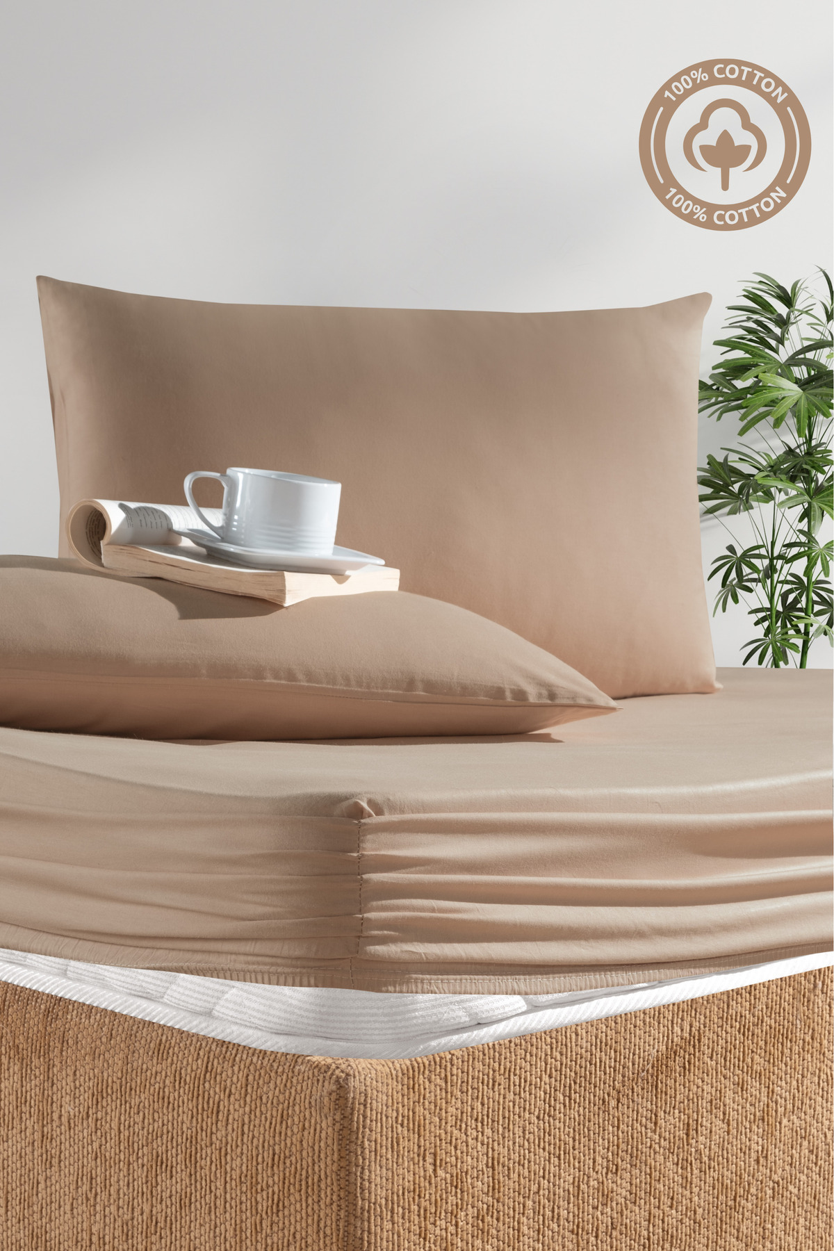 %100 Pamuk Kahve Tek Kişilik Ranforce Kumaş Lastikli Çarşaf Yastık Kılıfı Seti /100x200/120x200/