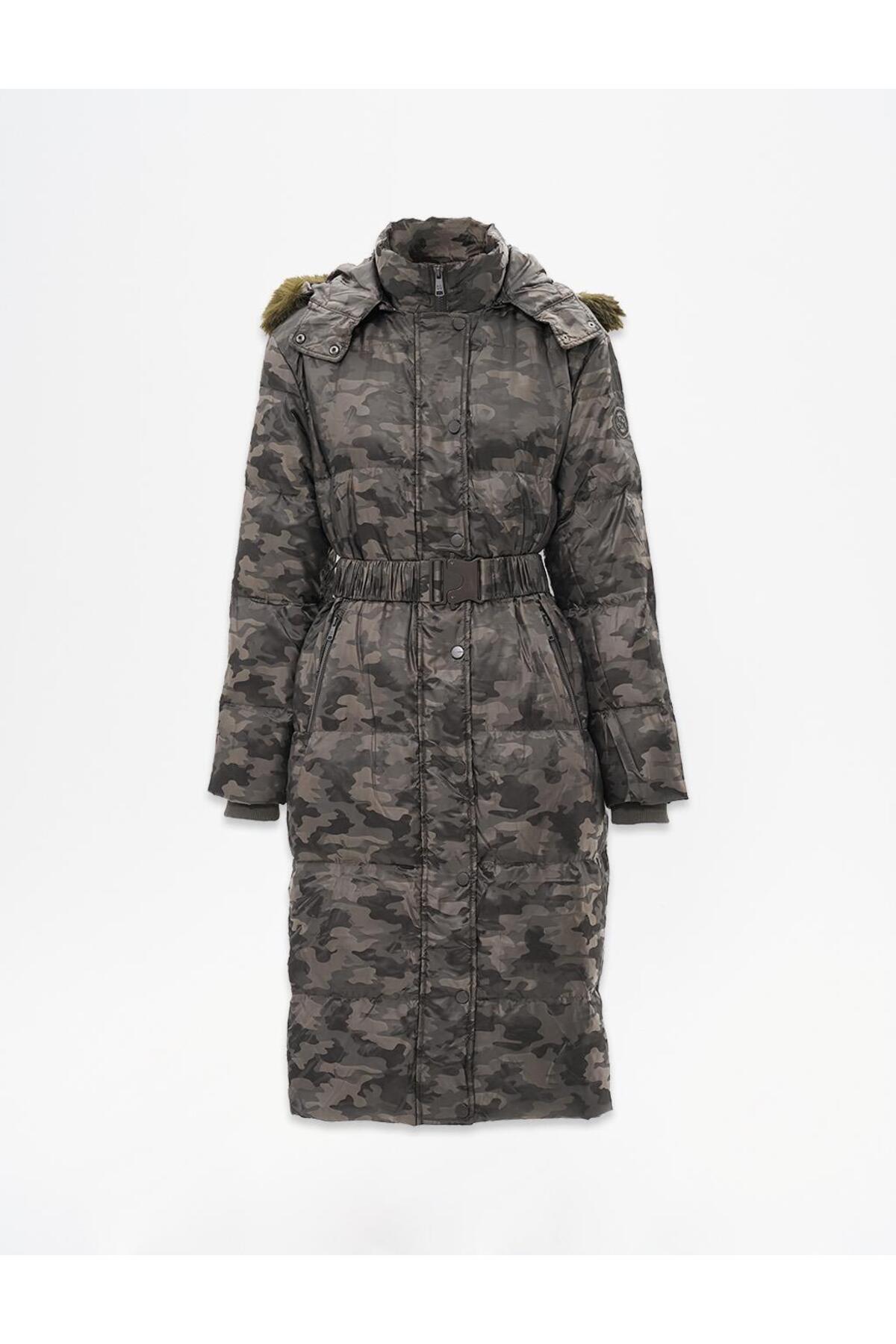 Kamuflaj Desen Kaz Tüyü Dolgulu Mont Lacivert