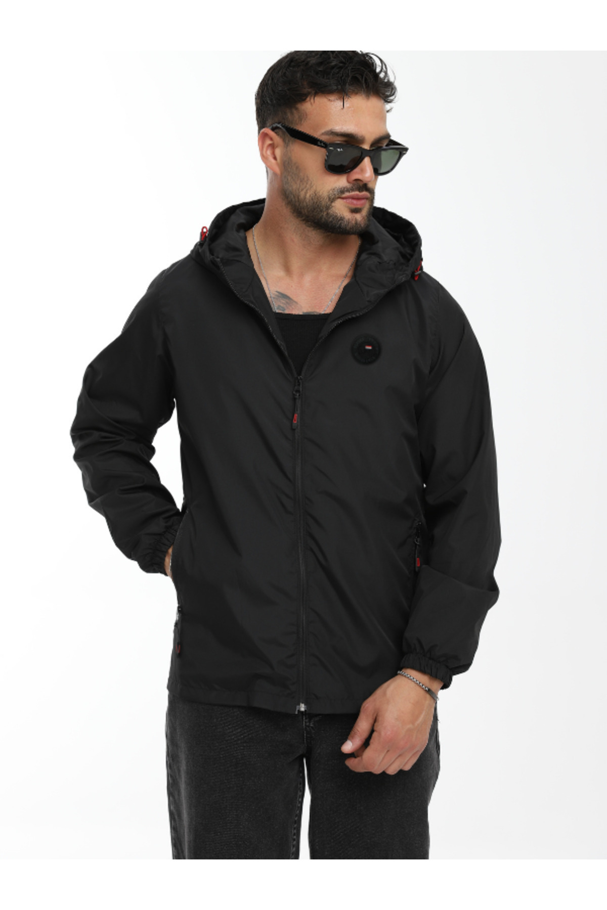 Erkek Siyah Içi Astarlı Su Ve Rüzgar Geçirmez Kapüşonlu Cepli Yağmurluk