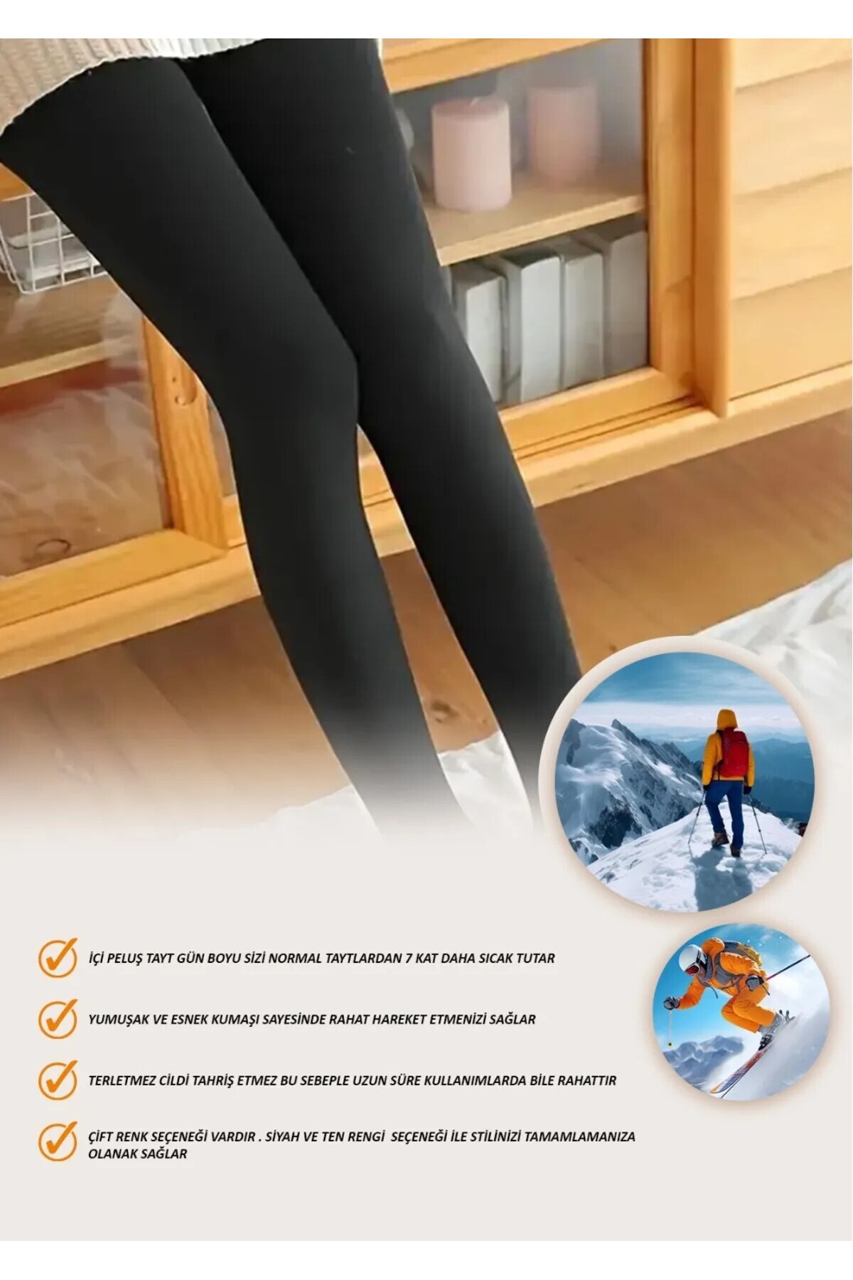 - Kış aylarında sıcak tutan pelüş termal tayt, soğuk havalarda konforlu bir kullanım sunar.