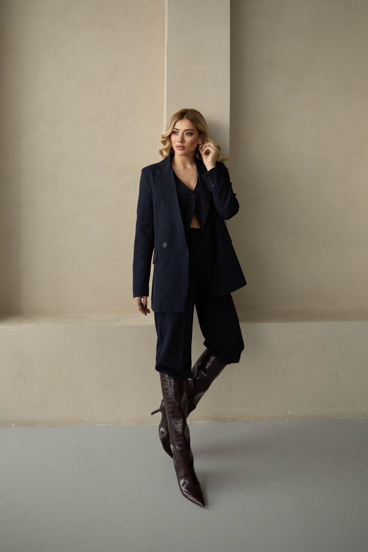 Kadın Lacivert Blazer Ceket Yelek Pantolon Takım Elbise